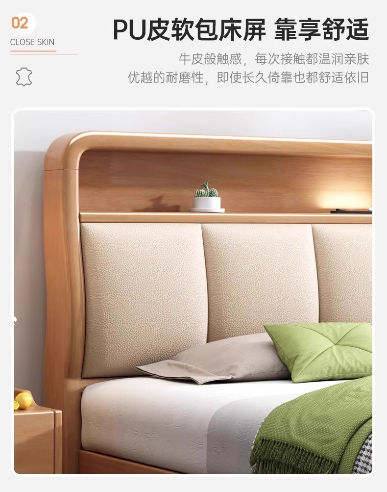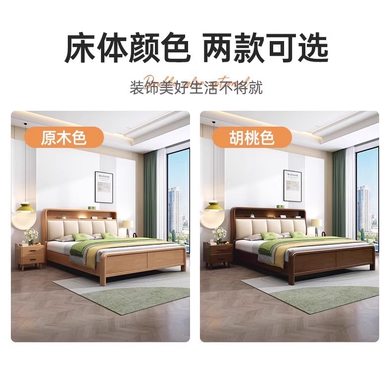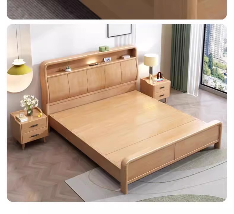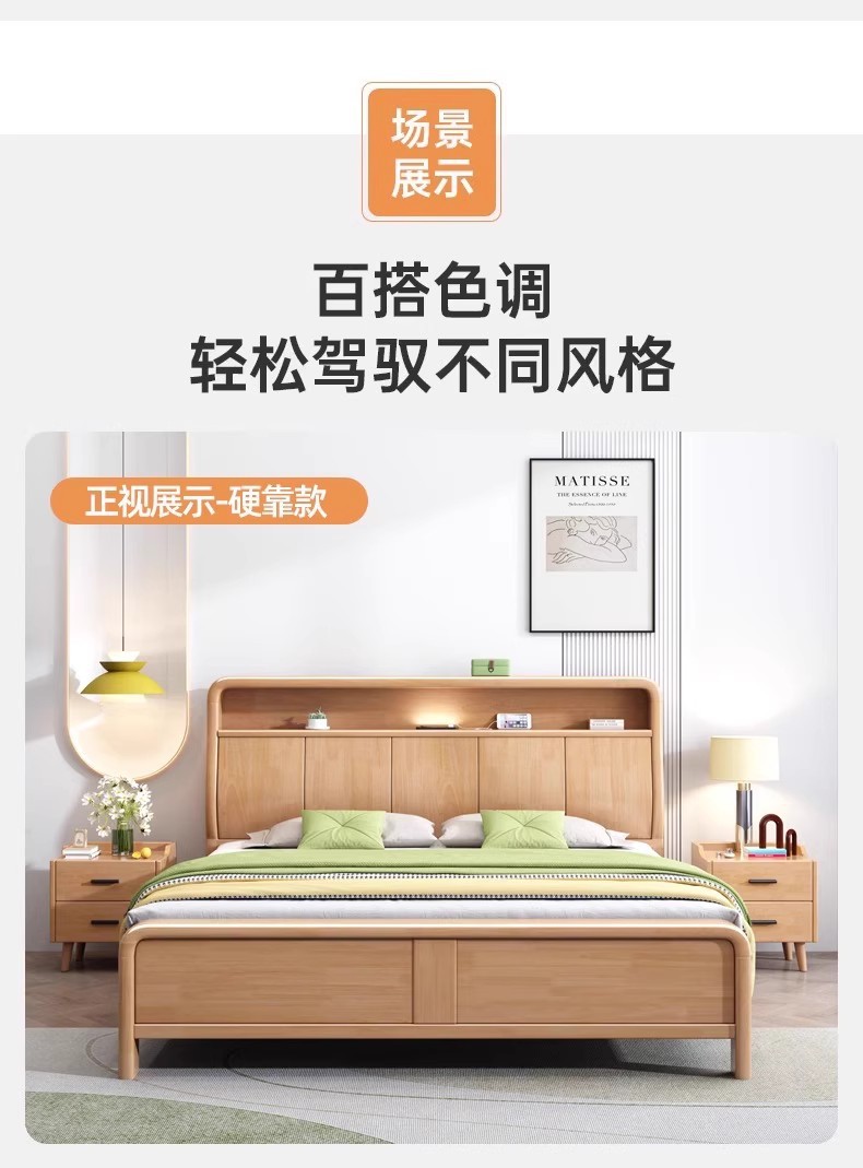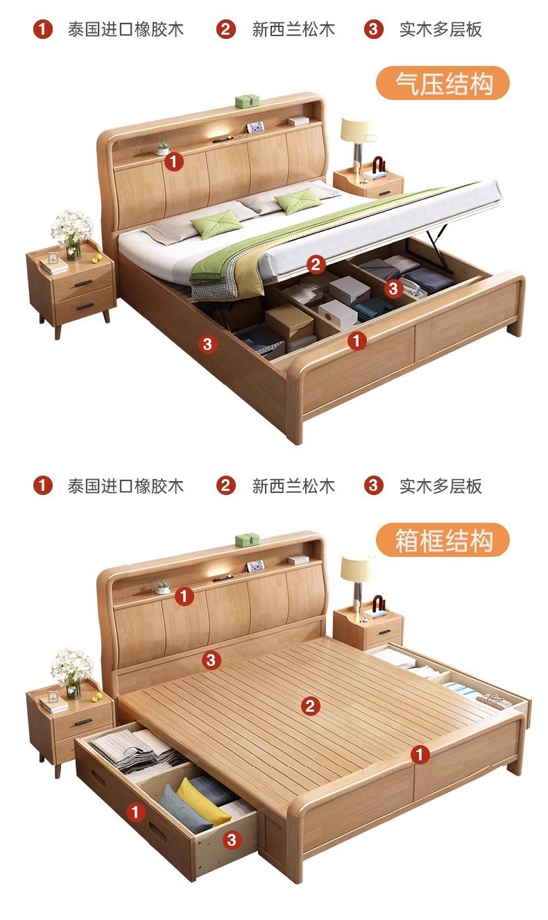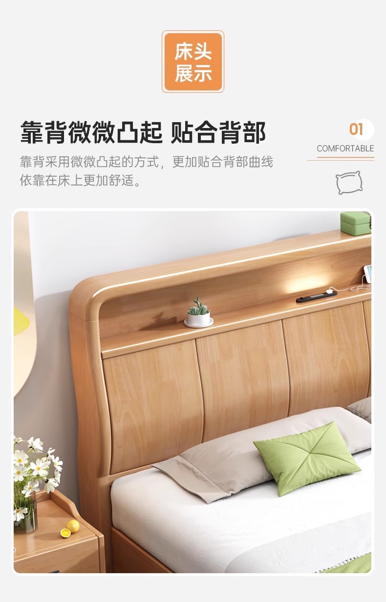 북유럽 1.8 m 마스터 침실 더블 침대 1.5 m 가정용 USB 램프 나무 침대 현대 간단한 높은 상자 보관 침대스토어 가기