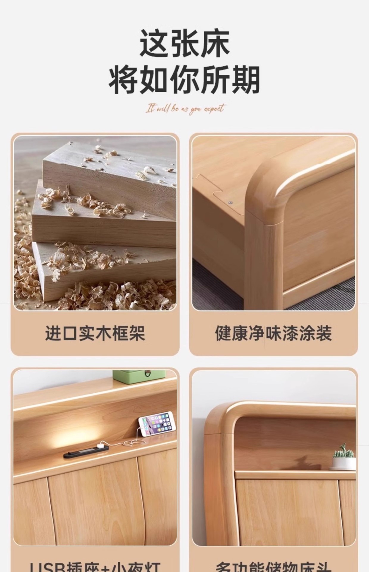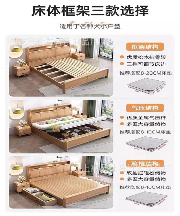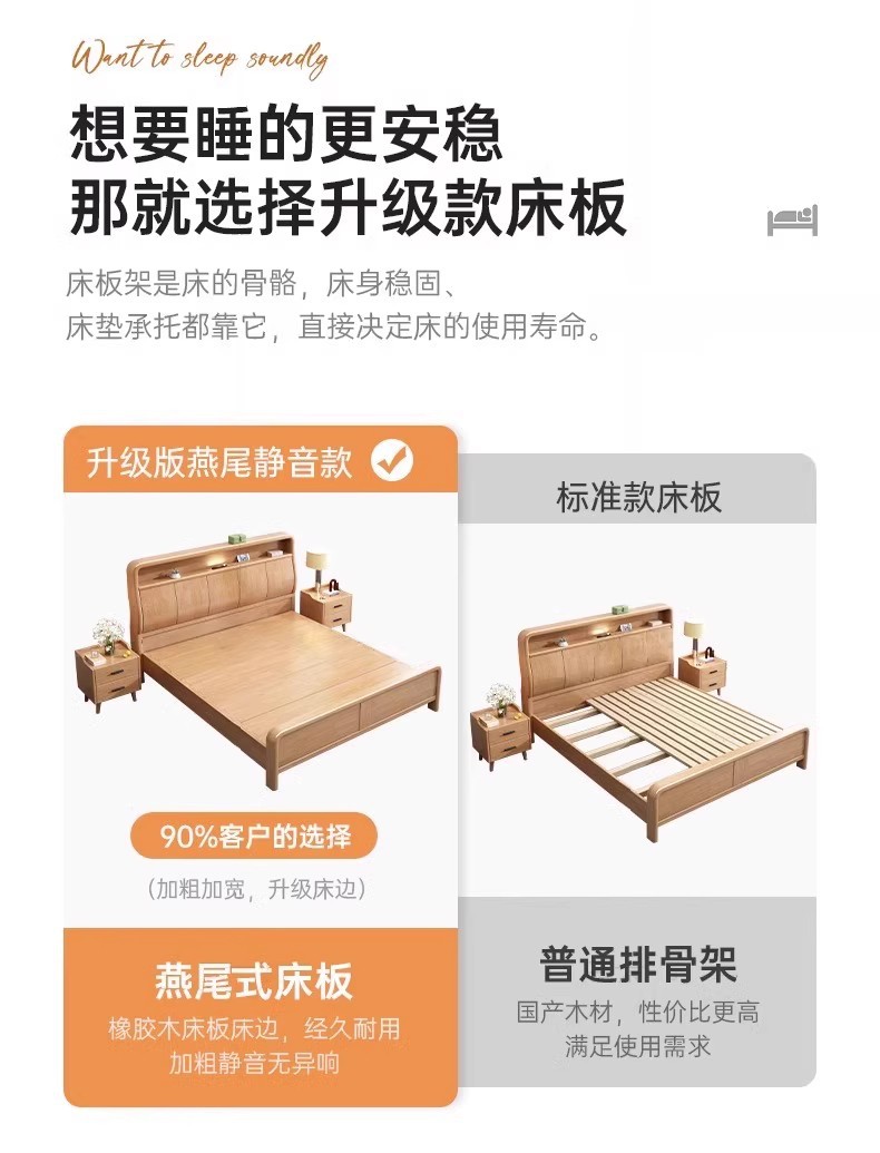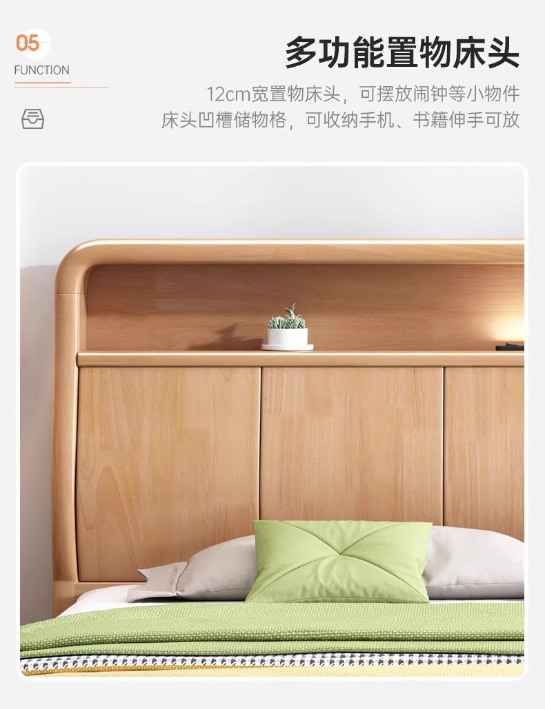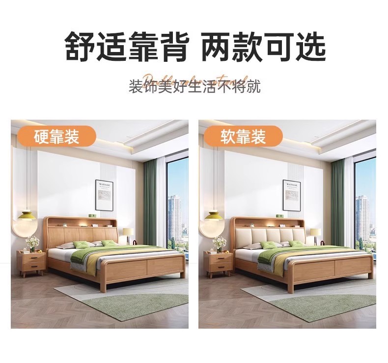 북유럽 1.8 m 마스터 침실 더블 침대 1.5 m 가정용 USB 램프 나무 침대 현대 간단한 높은 상자 보관 침대스토어 가기