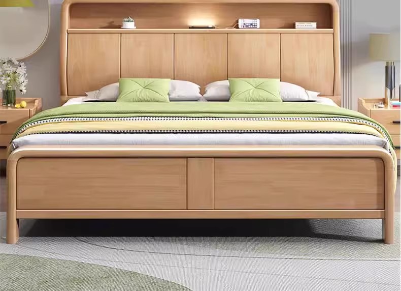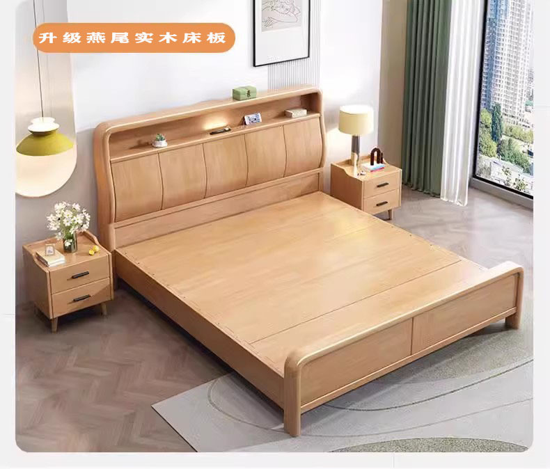 북유럽 1.8 m 마스터 침실 더블 침대 1.5 m 가정용 USB 램프 나무 침대 현대 간단한 높은 상자 보관 침대