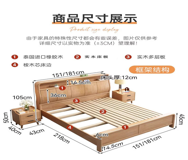 • 단단한 나무 침대 + 침대 옆 탁자 1 개 + 10cm 능선 보호 패드
