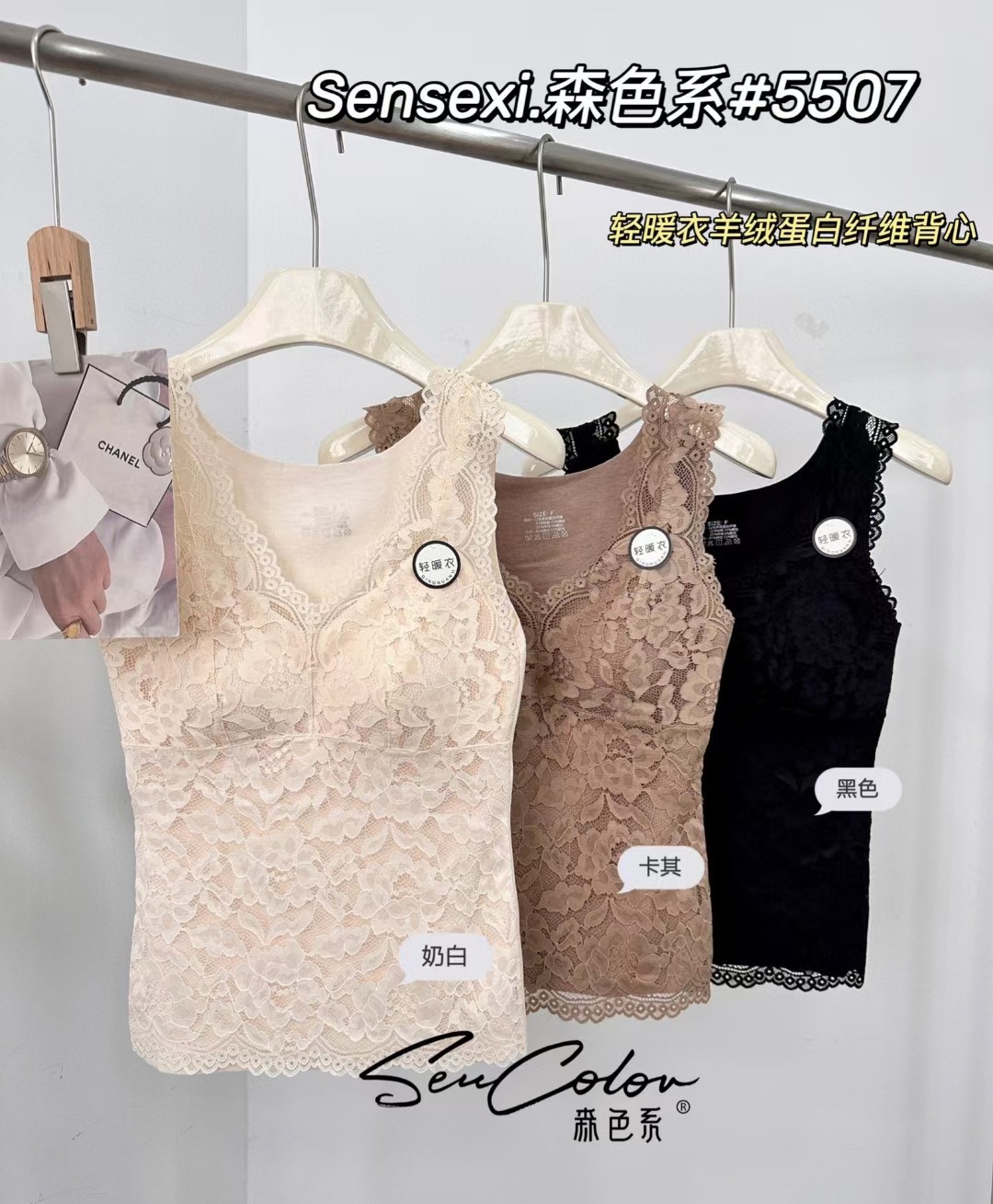 5507 보온 조끼 가벼운 보온복 캐시미어 단백질 섬유 여성용 가슴 패드 포함 섹시 슬림핏 레이스 이너웨어