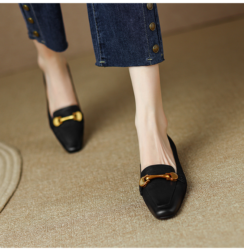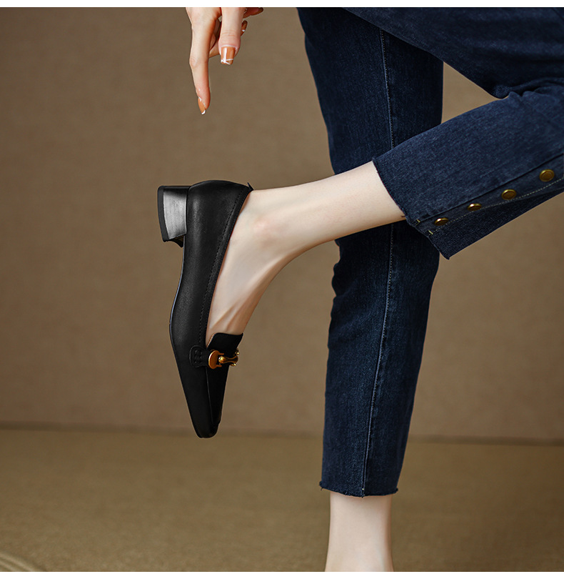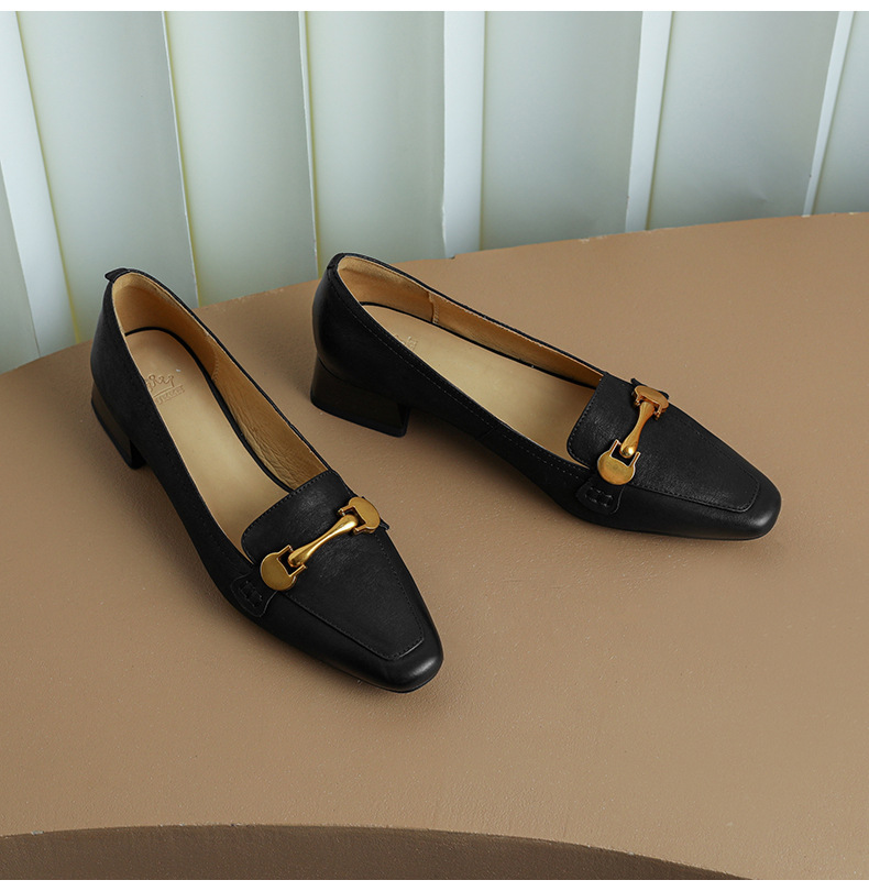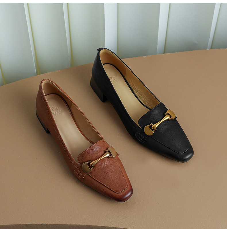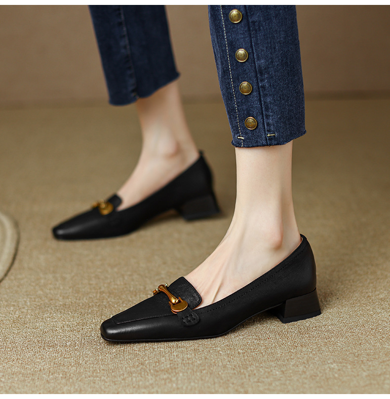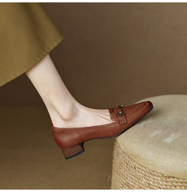 내부 및 외부 부드러운 가죽 복고풍 정품 하이힐 단일 신발 작은 사각형 발가락 중간 발 뒤꿈치 두꺼운 발 뒤꿈치 가을 새로운 여성 가죽 신발 여성 신발스토어 가기