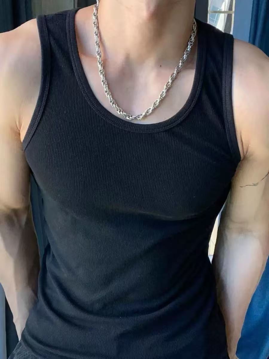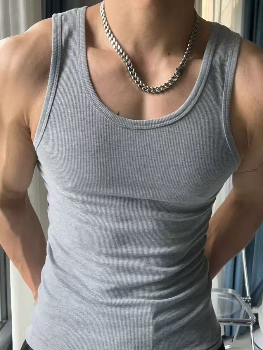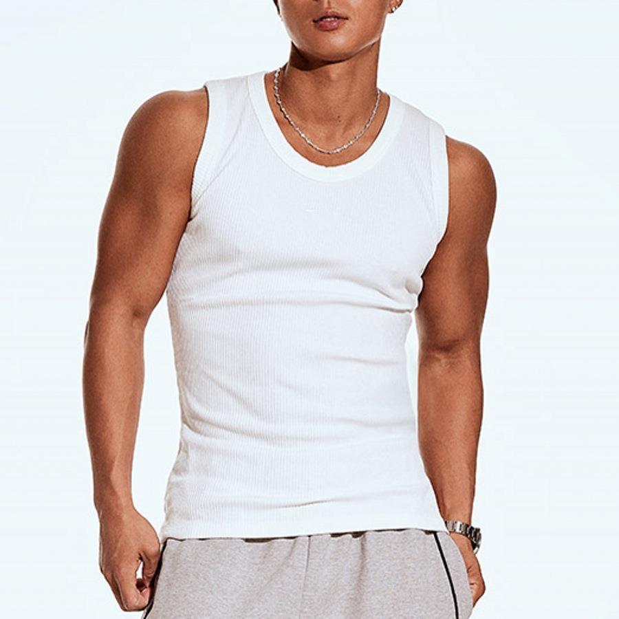 새로운 여름 트렌디 브랜드 솔리드 컬러 속건 탄성 꽉 끼는 스포츠 스레드 조끼 남성용 민소매 조끼 피트니스 트레이닝 실행