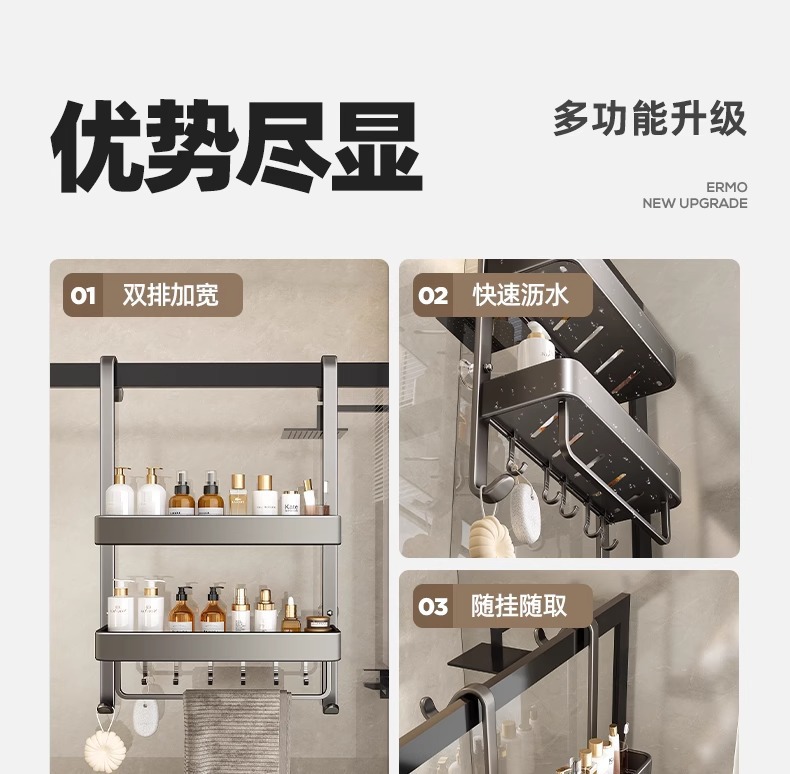 욕실 스토리지 랙 샤워 룸 교수형 선반 교수형 바구니 욕실 보관 화장실 문 후면 건 애쉬