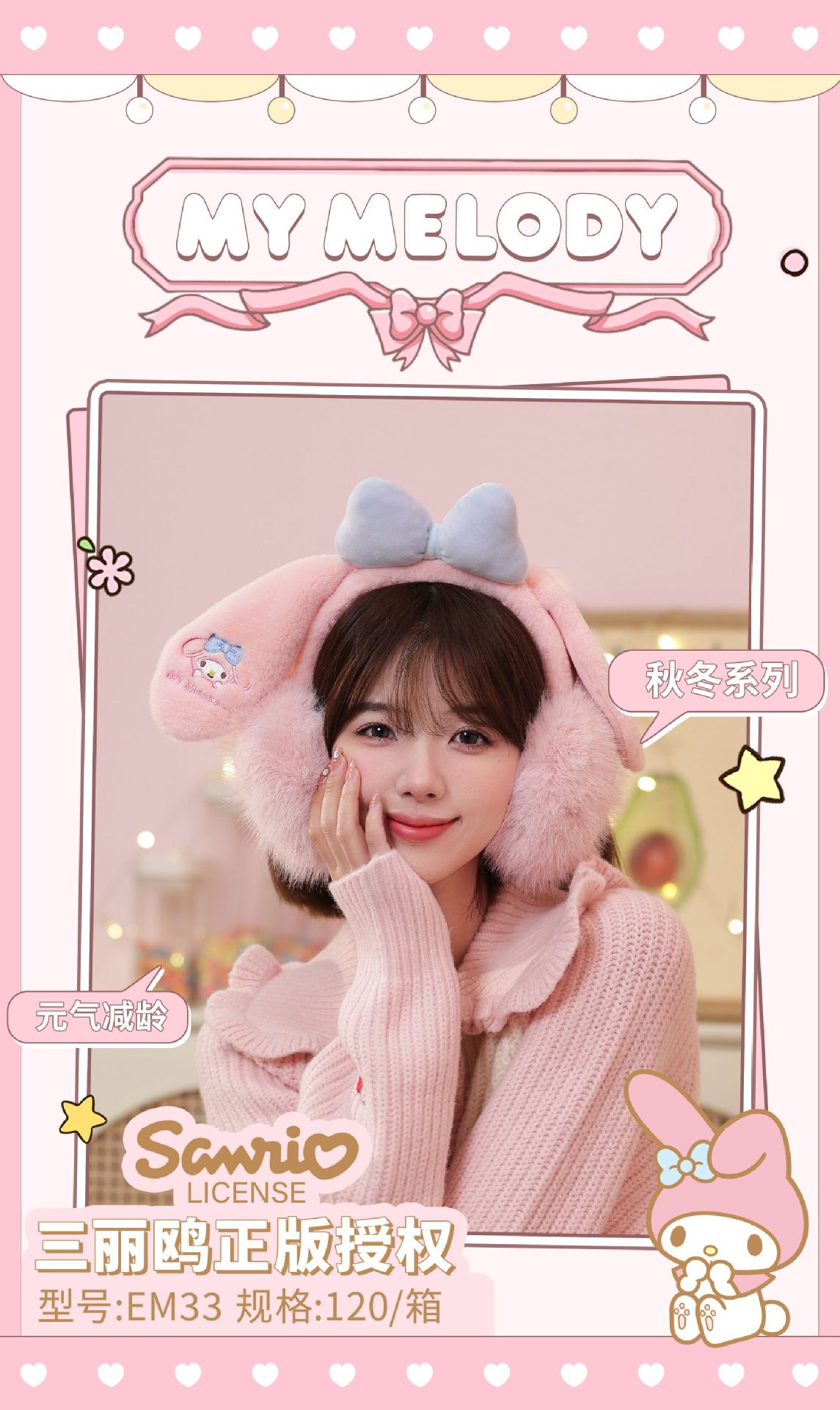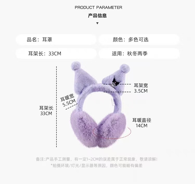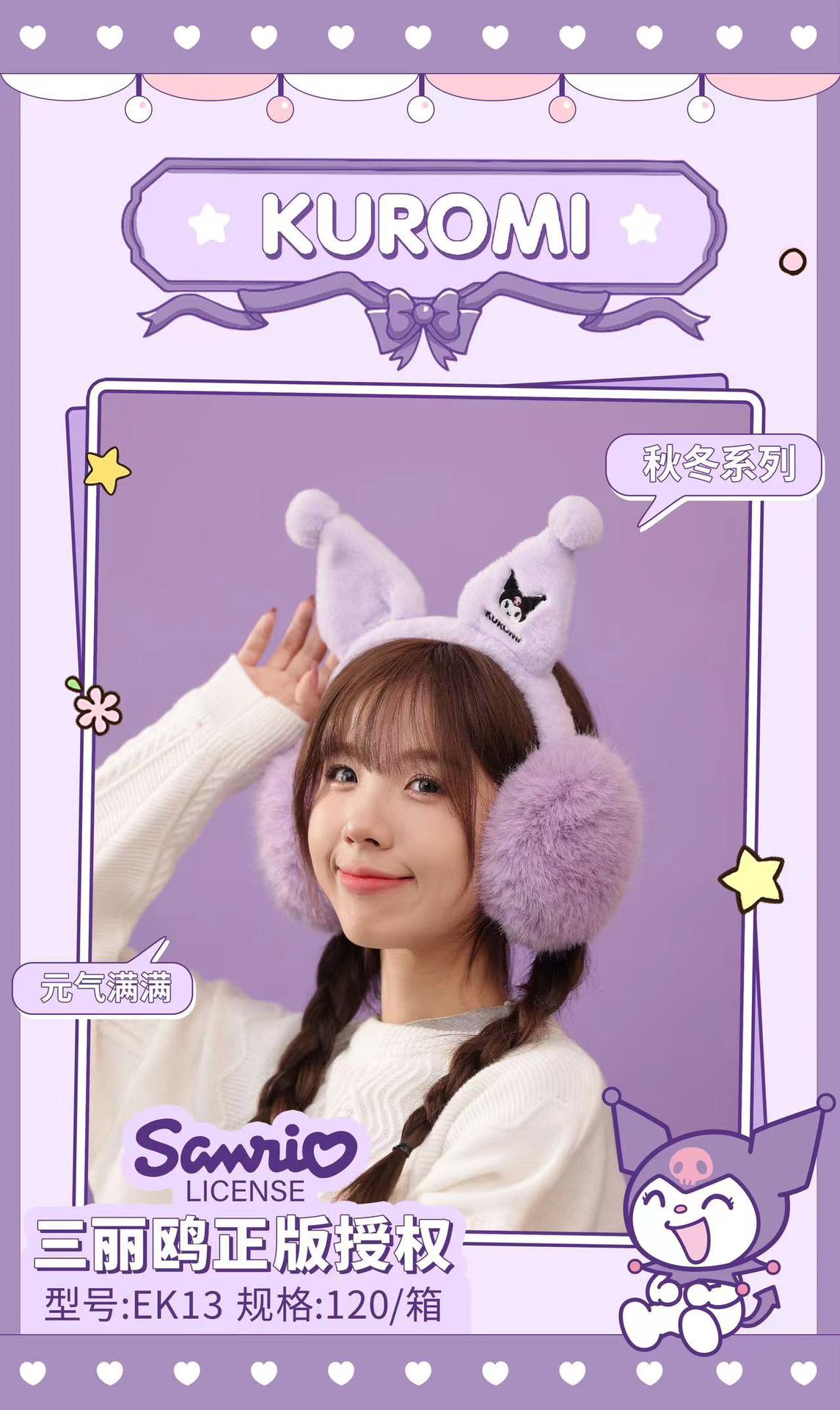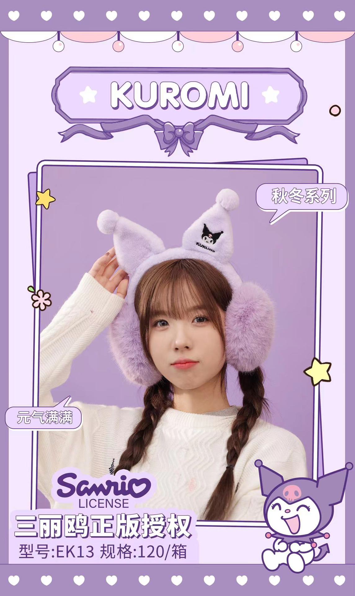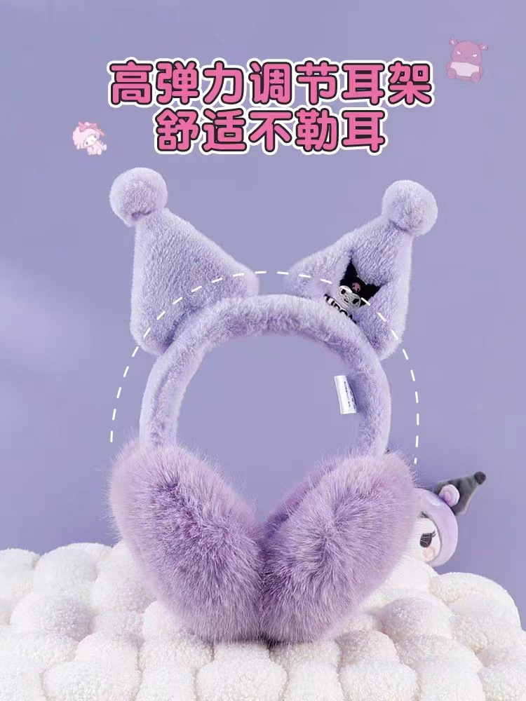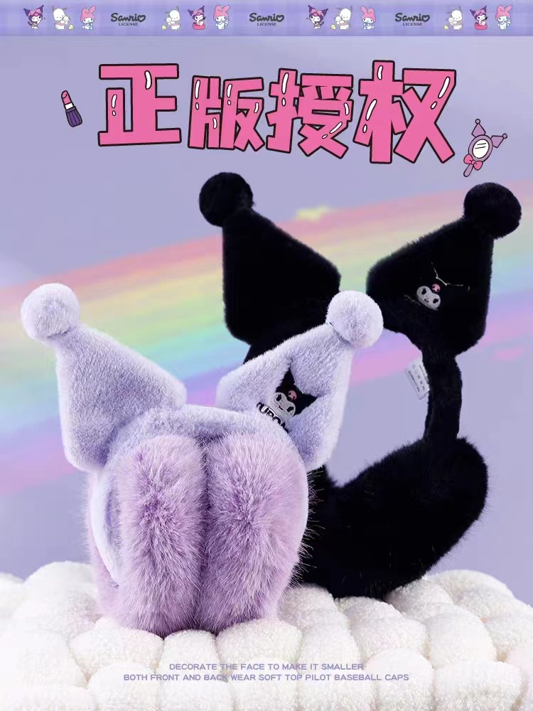 산리오 두꺼운 플리스 귀마개 여성용 겨울 자전거 타기 귀 보호 방한 귀여운 쿠로미 귀마개스토어 가기