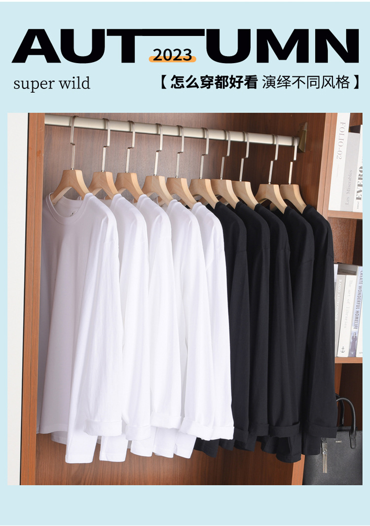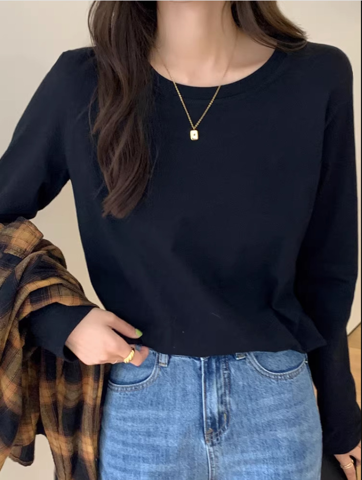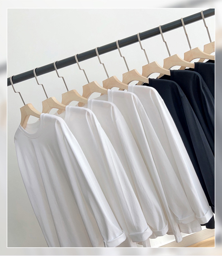 여성용 오른쪽 어깨 긴팔 티셔츠 2025년 신상 봄 가을 겨울 이너웨어 순면 루즈핏 화이트 베이스 셔츠 여성 상의스토어 가기