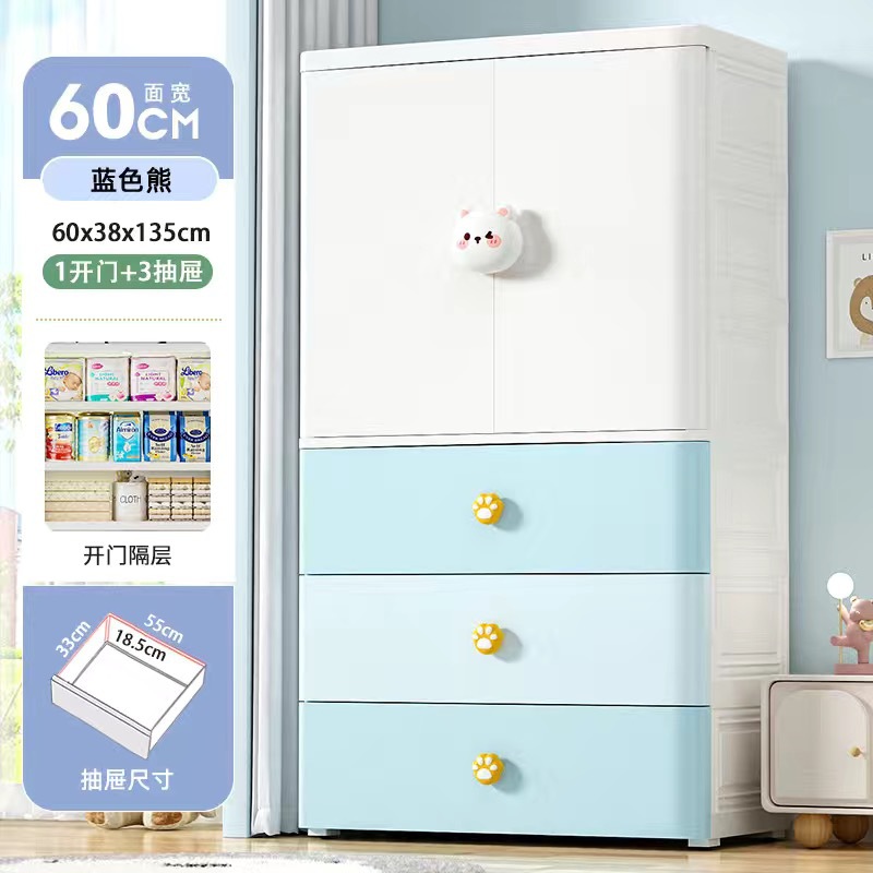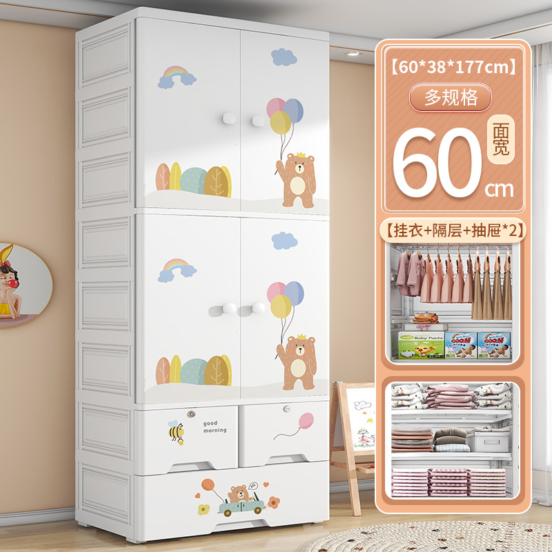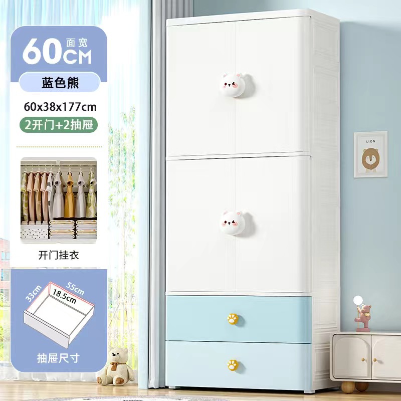 가정용 더블 도어 어린이 옷장 플라스틱 아기 장난감 옷 보관 캐비닛 서랍 유형 침실 마감 보관 캐비닛