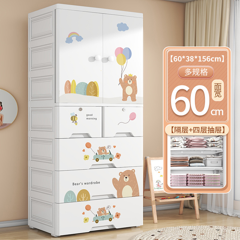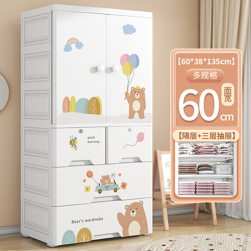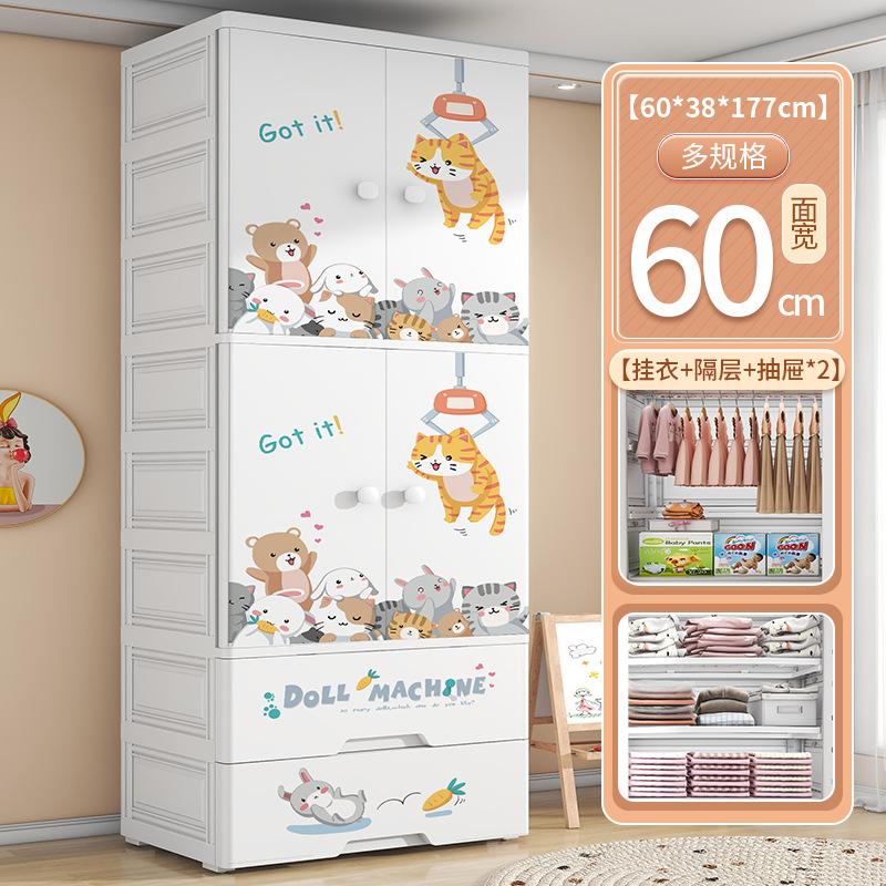 가정용 더블 도어 어린이 옷장 플라스틱 아기 장난감 옷 보관 캐비닛 서랍 유형 침실 마감 보관 캐비닛스토어 가기