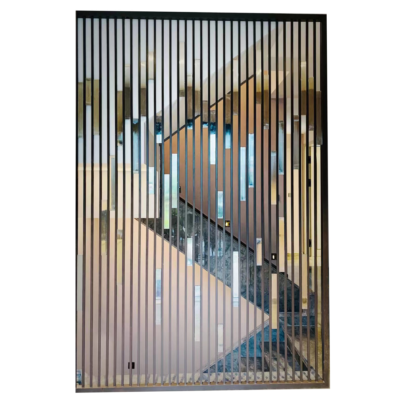 가벼운 럭셔리 수직 거울 스크린 거실 계단 파티션 호텔 사무실 그릴 장식 베플 스테인레스 스틸 입구