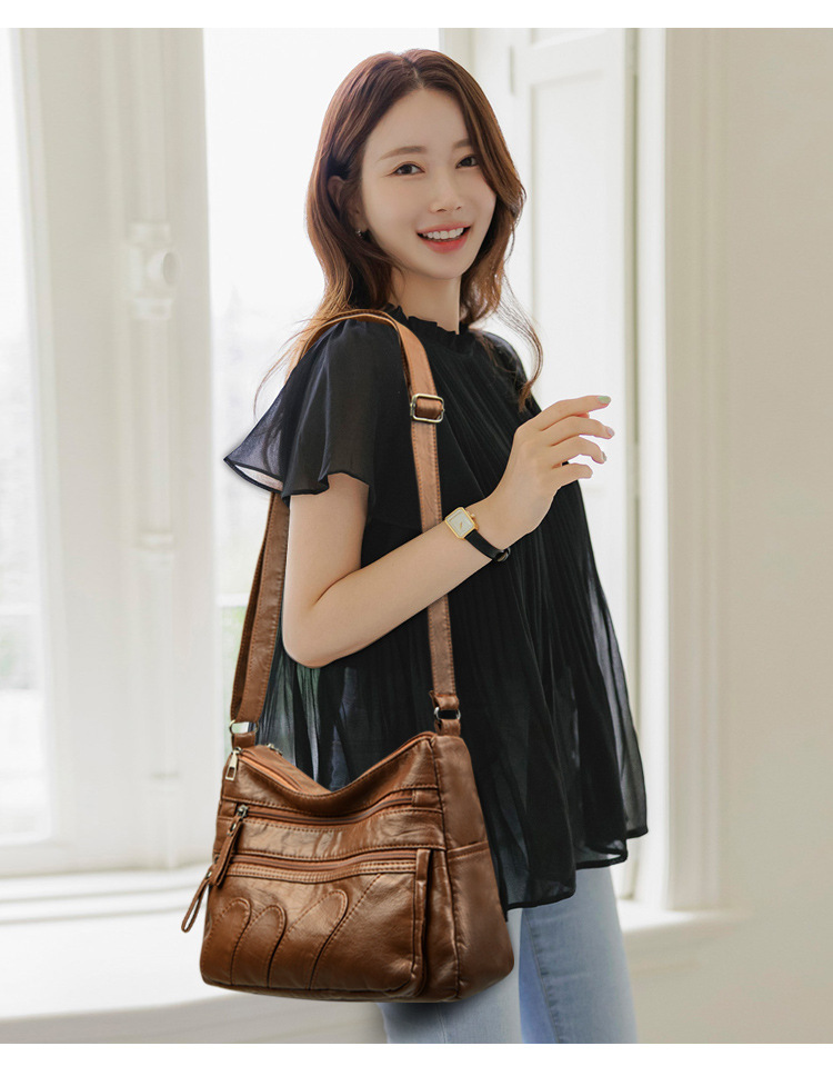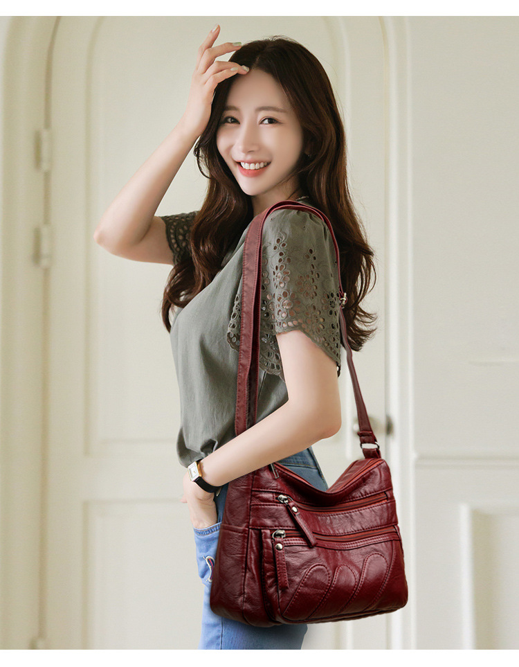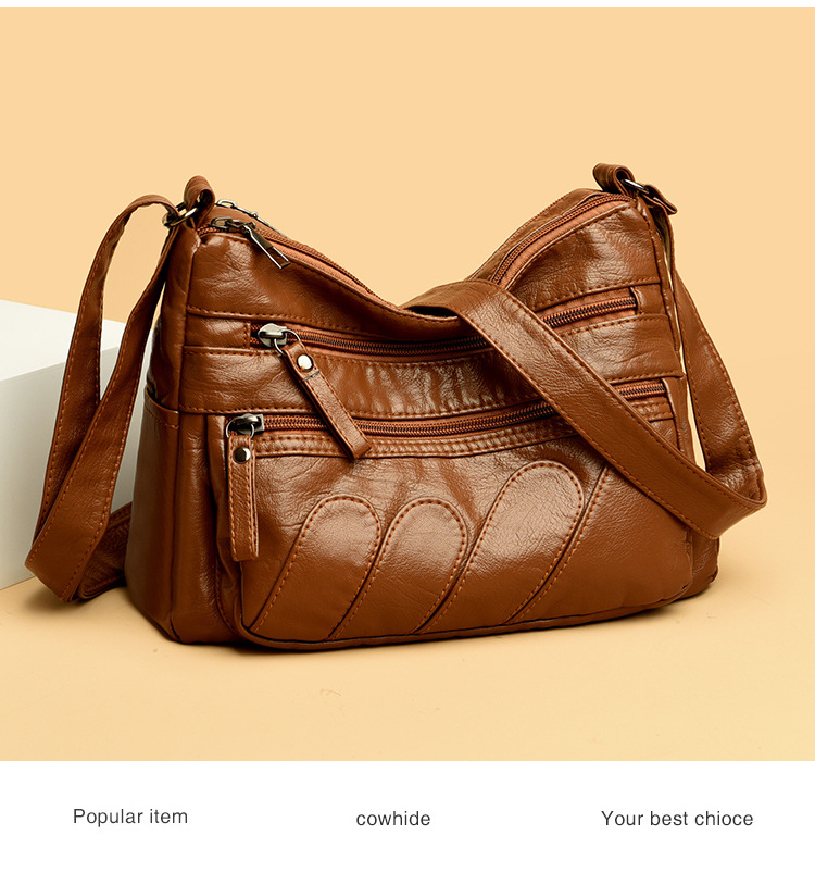 대외 무역 뉴 워시 가죽 여성 가방 한국식 숄더백 부드러운 가죽 대용량 중년 여성 크로스보더 공급스토어 가기