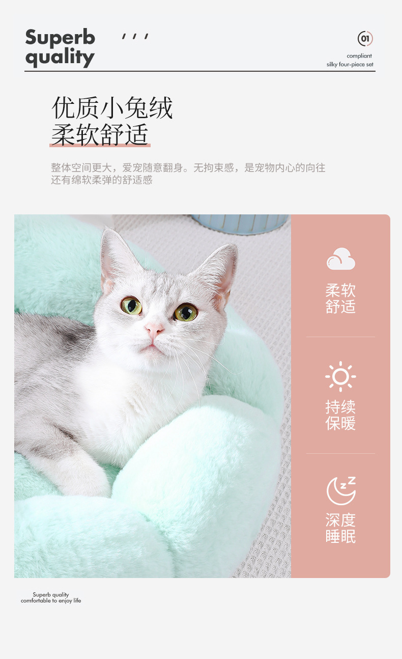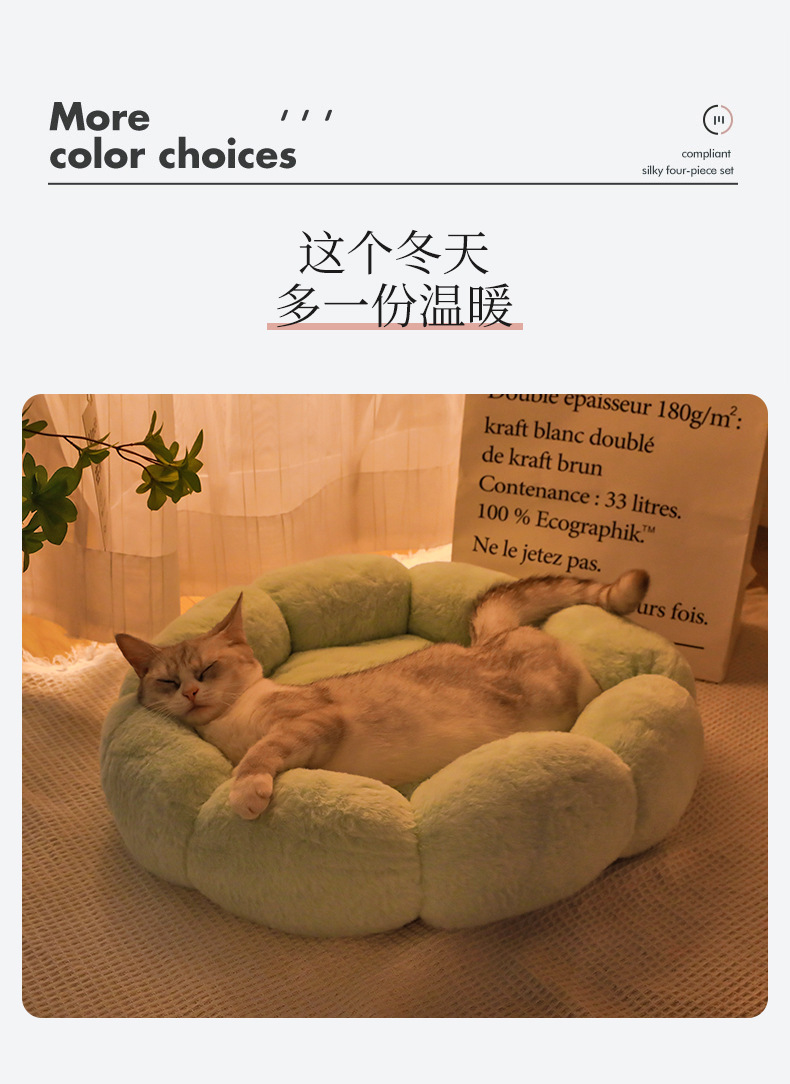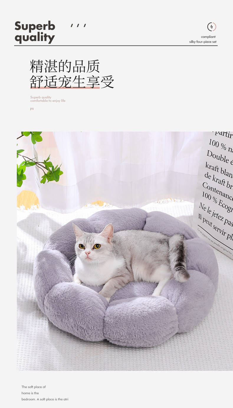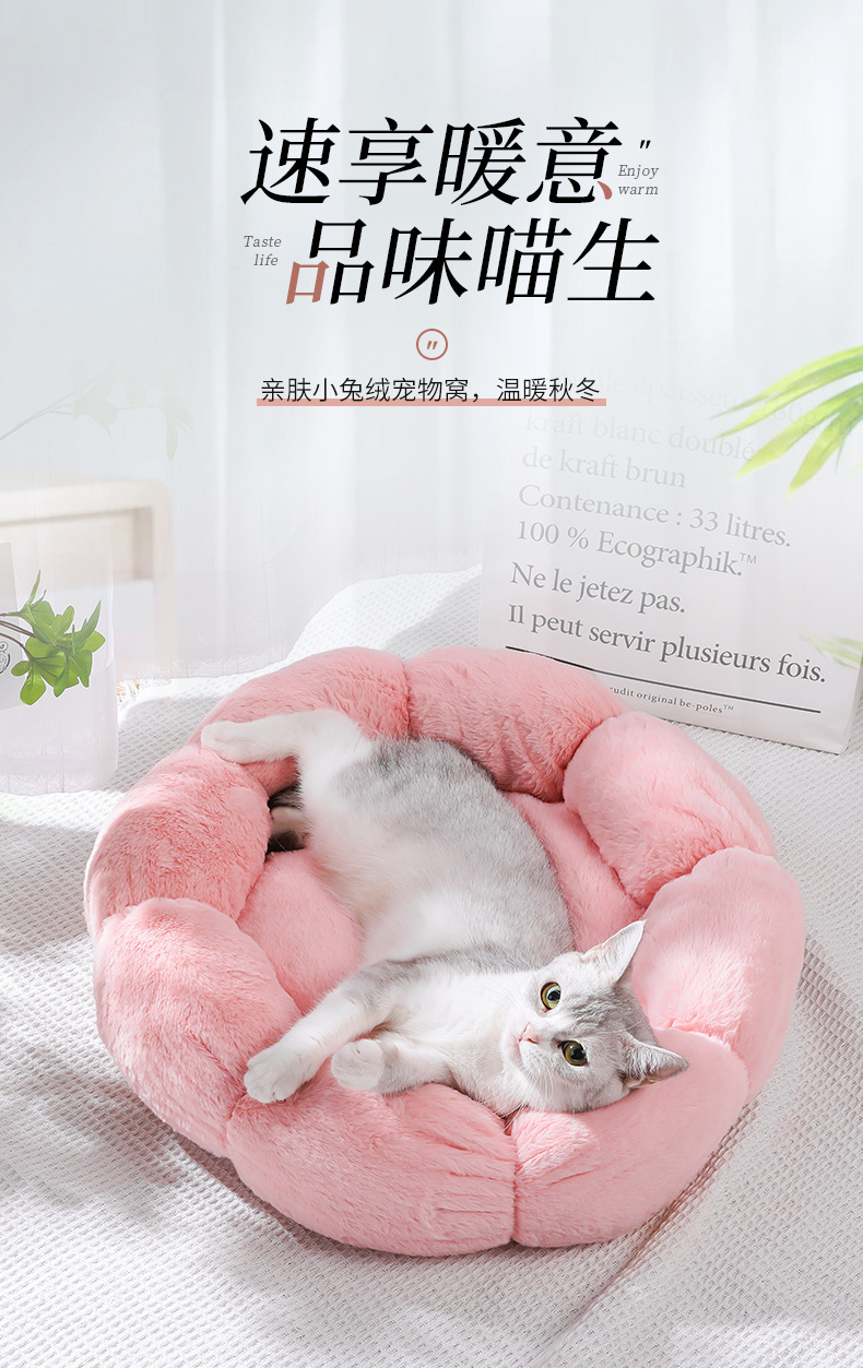 애완 동물 둥지 라운드 꽃 둥지 겨울 고양이 따뜻한 봉제 고양이 둥지 사계절 유니버설 깊은 잠자는 개집 재고 도매스토어 가기