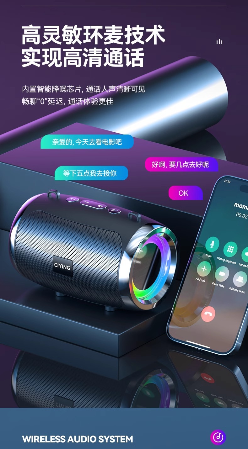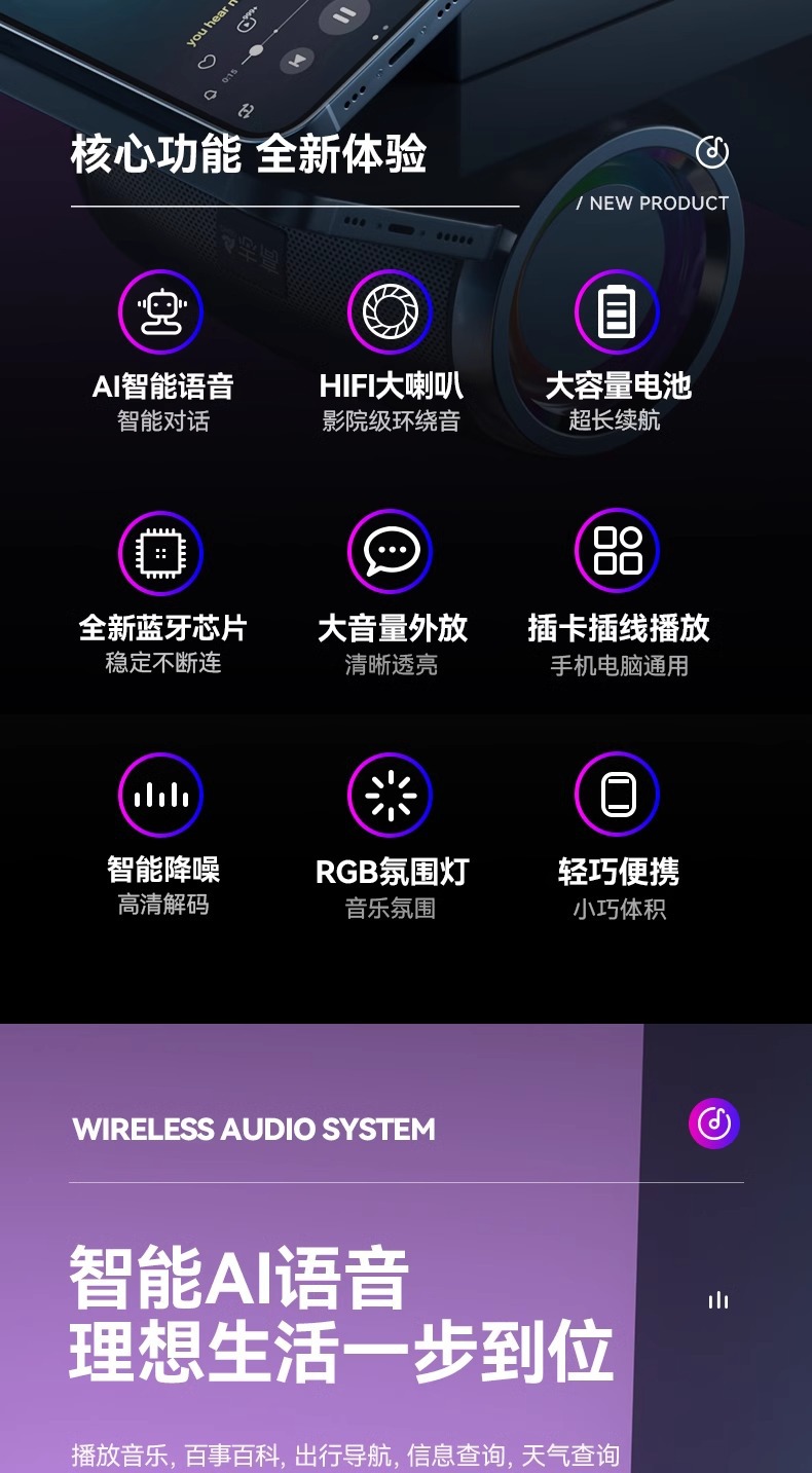크로스보더 전자상거래 AI 블루투스 스피커 미니 휴대용 오디오 가정용 야외 카드 삽입형 서브우퍼 야외 휴대용스토어 가기
