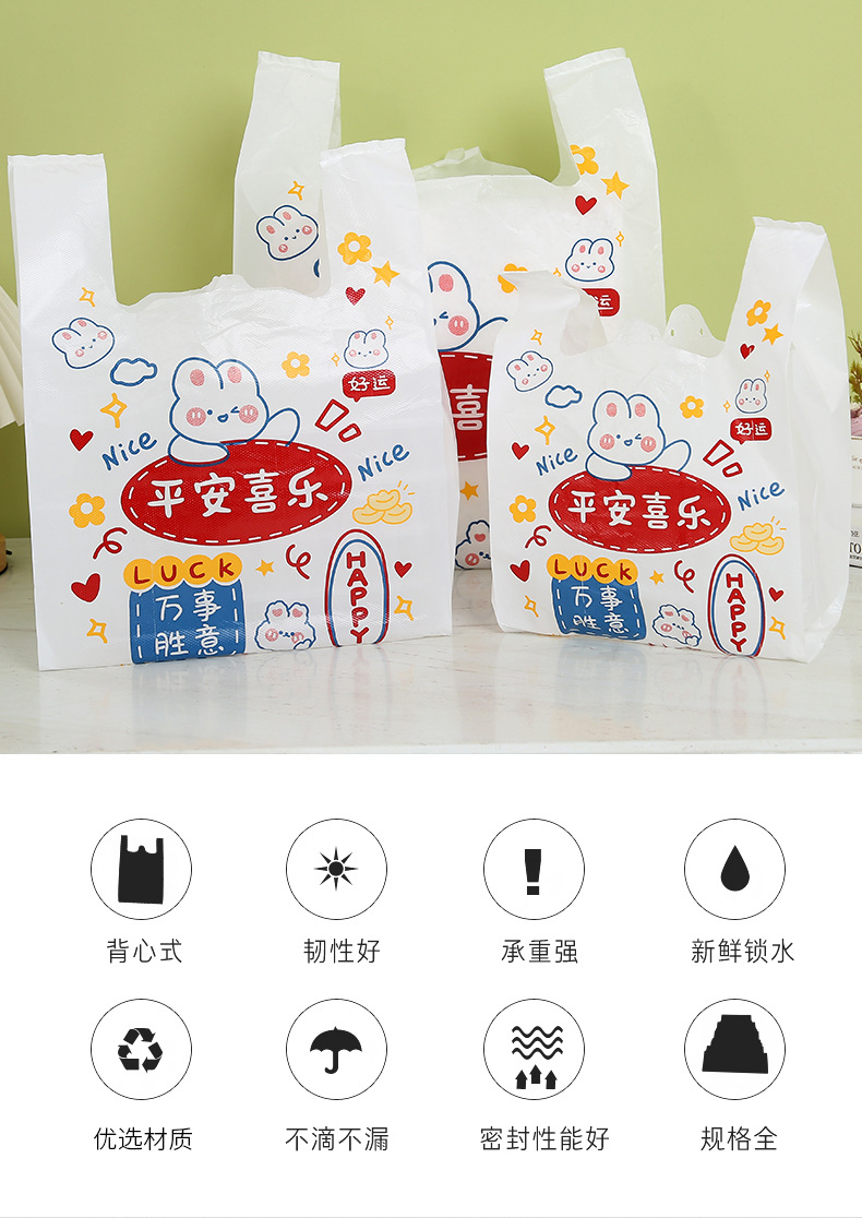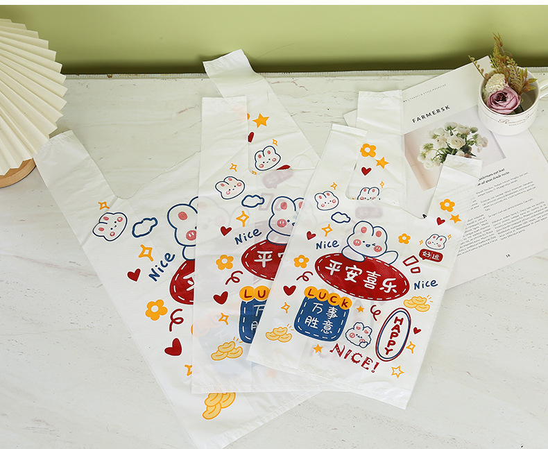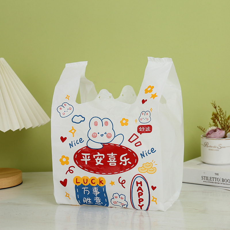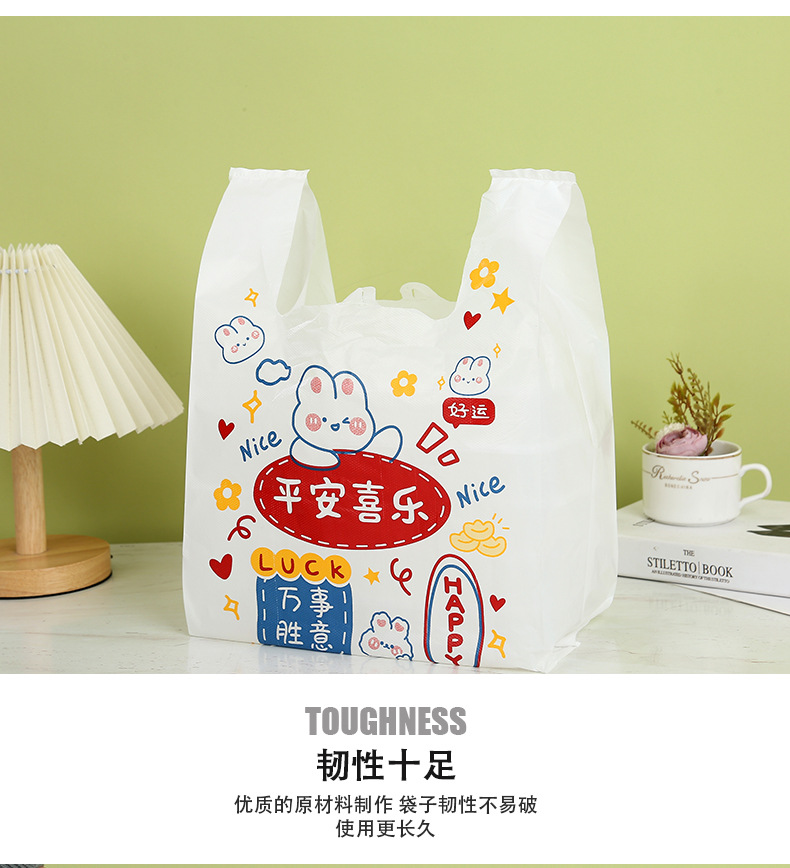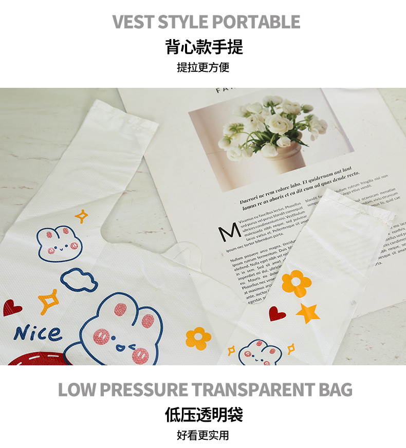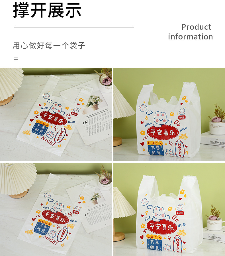 Ping an Joy 패스트 푸드 테이크 아웃 덤핑 백 만화 낙서 PE 비닐 봉투 휴대용 투명 의류 쇼핑폰 가방스토어 가기