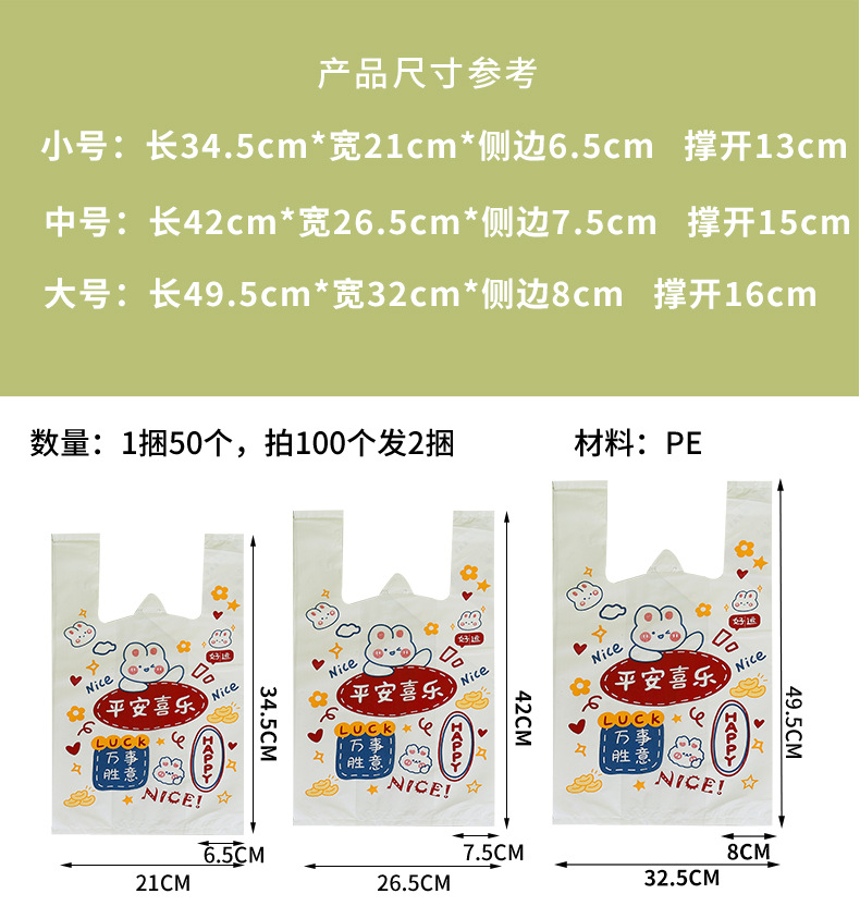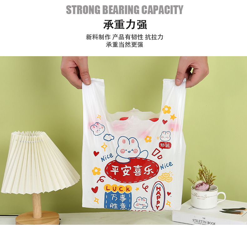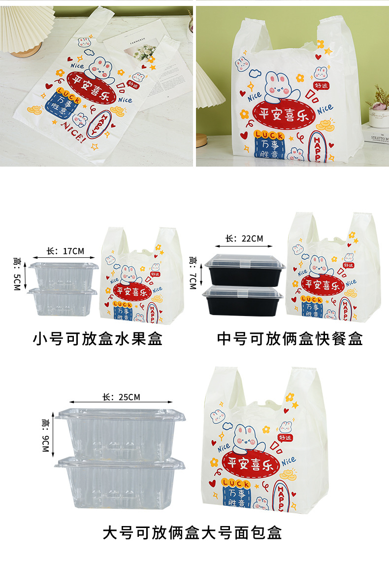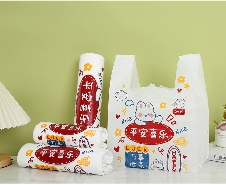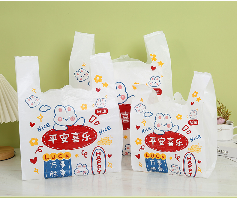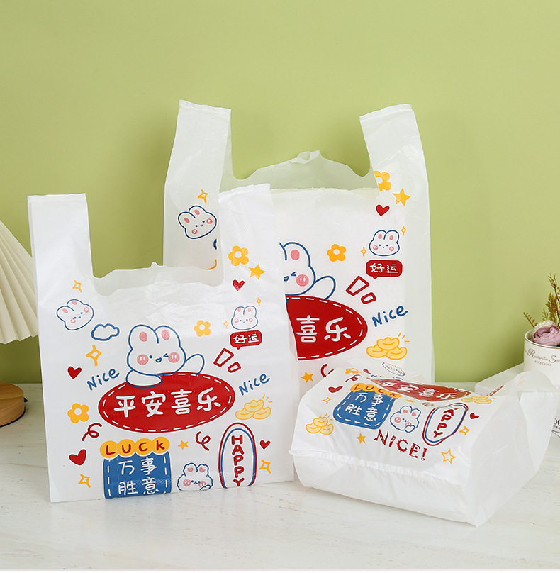 Ping an Joy 패스트 푸드 테이크 아웃 덤핑 백 만화 낙서 PE 비닐 봉투 휴대용 투명 의류 쇼핑폰 가방스토어 가기