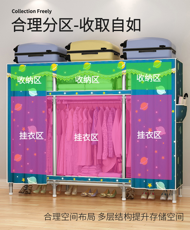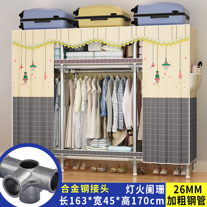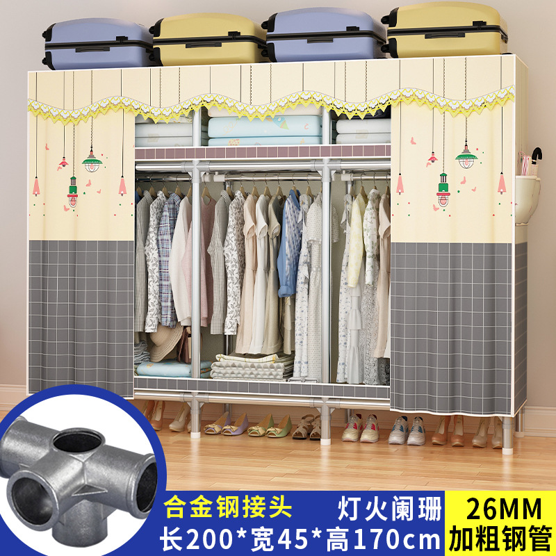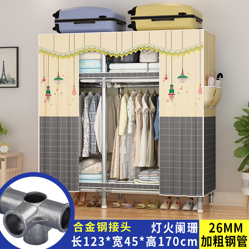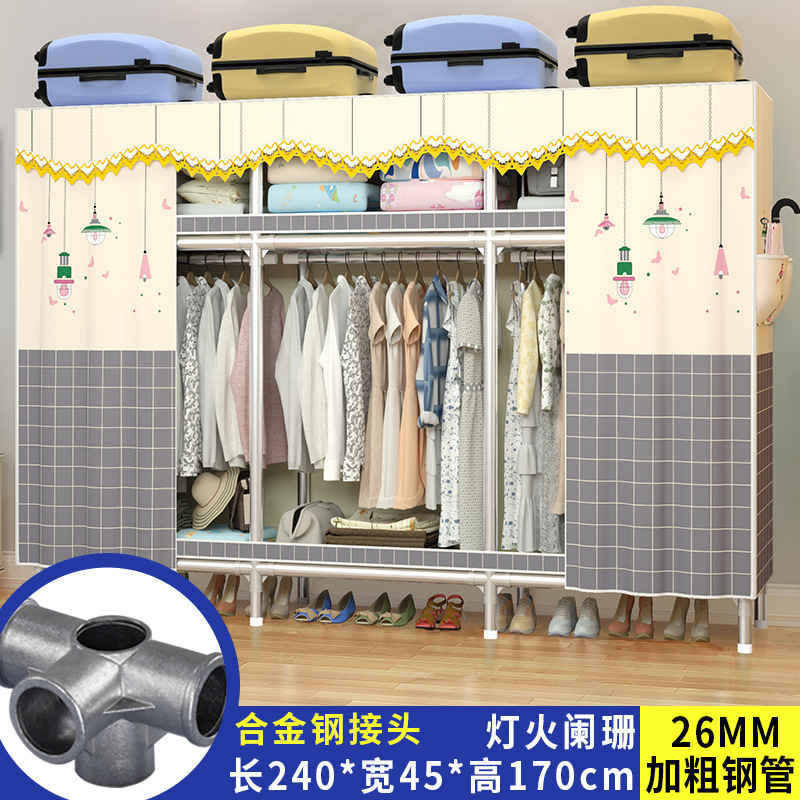 합금강 커넥터 간단한 옷장 홈 기숙사 임대실 천 옷장 전체 강철 프레임 대담한 조립 옷장 L2