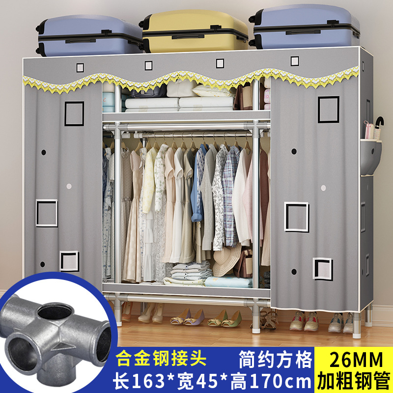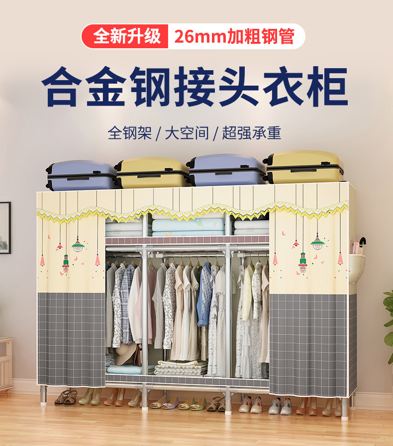 합금강 커넥터 간단한 옷장 홈 기숙사 임대실 천 옷장 전체 강철 프레임 대담한 조립 옷장 L2스토어 가기
