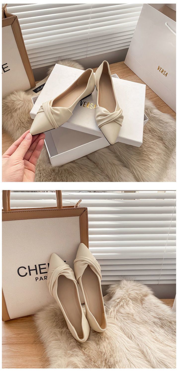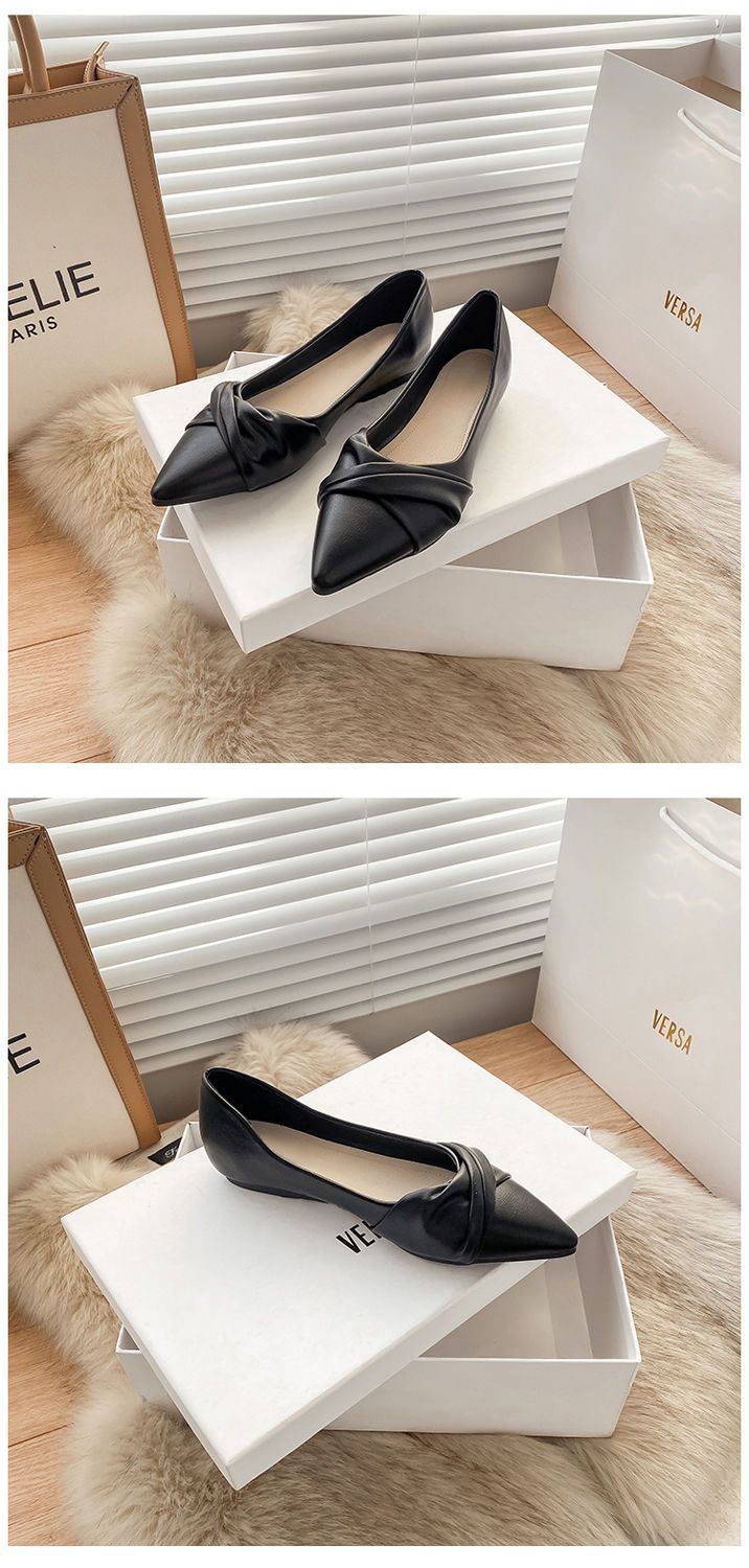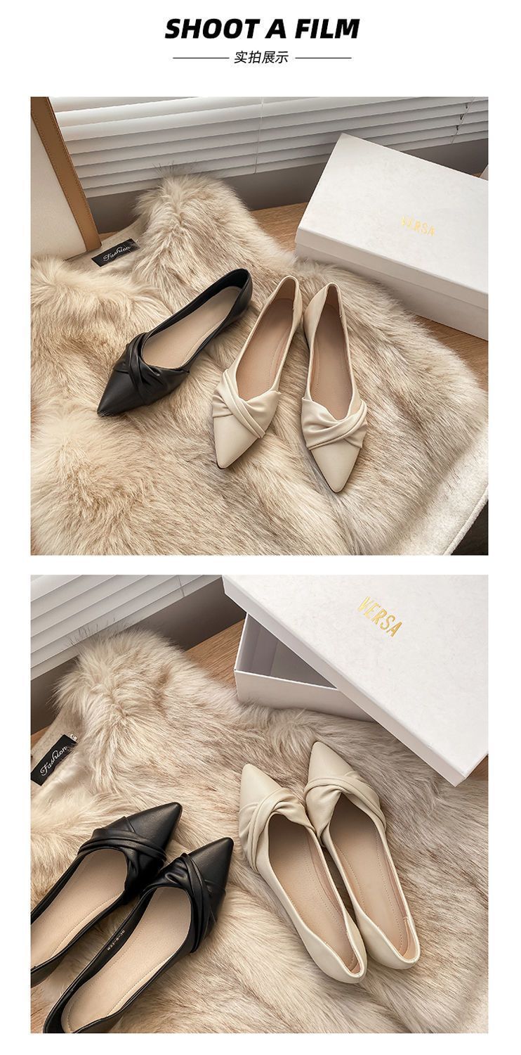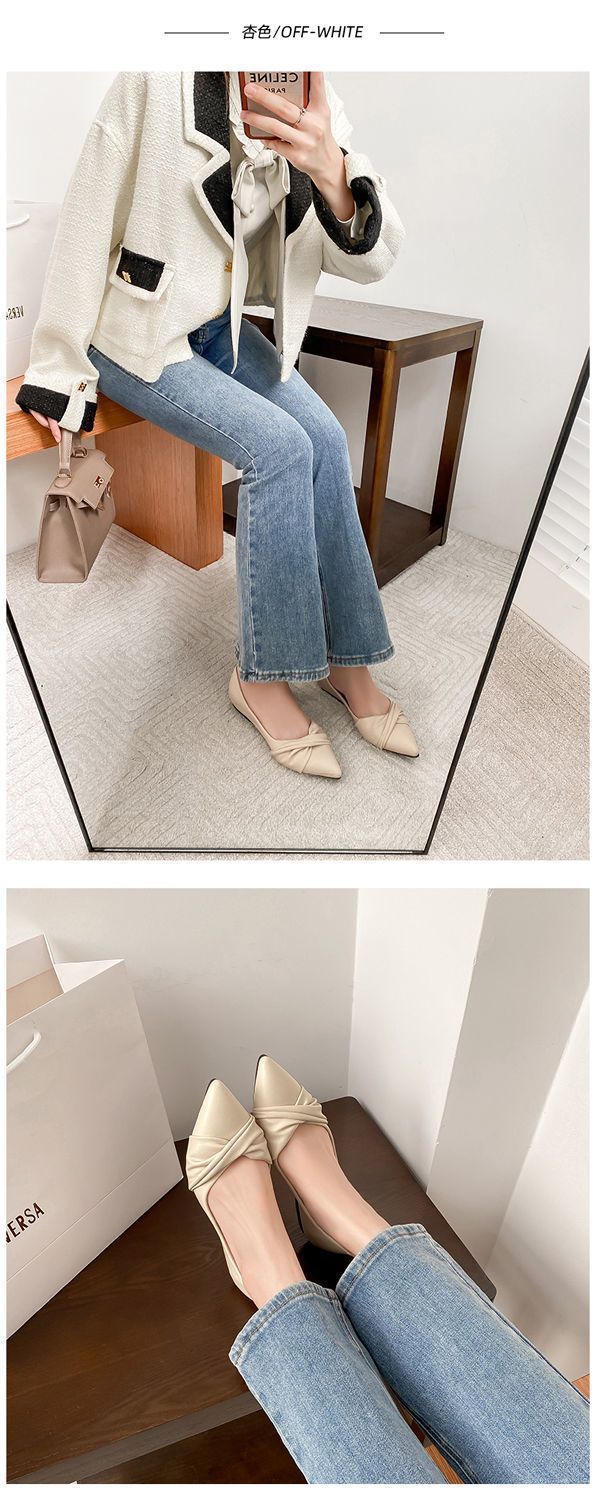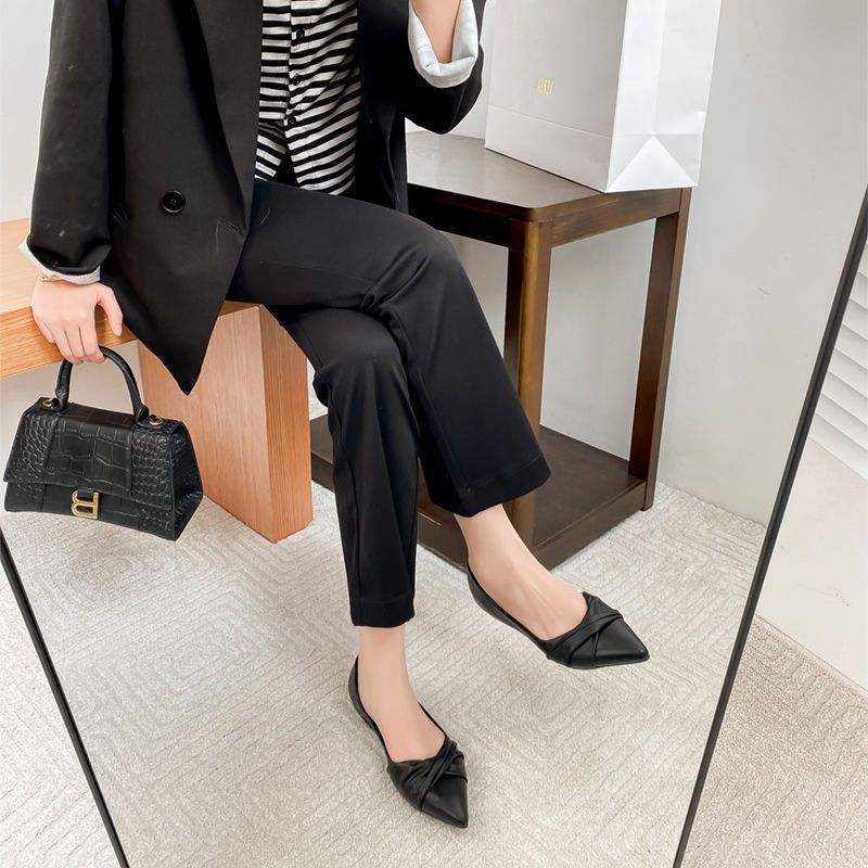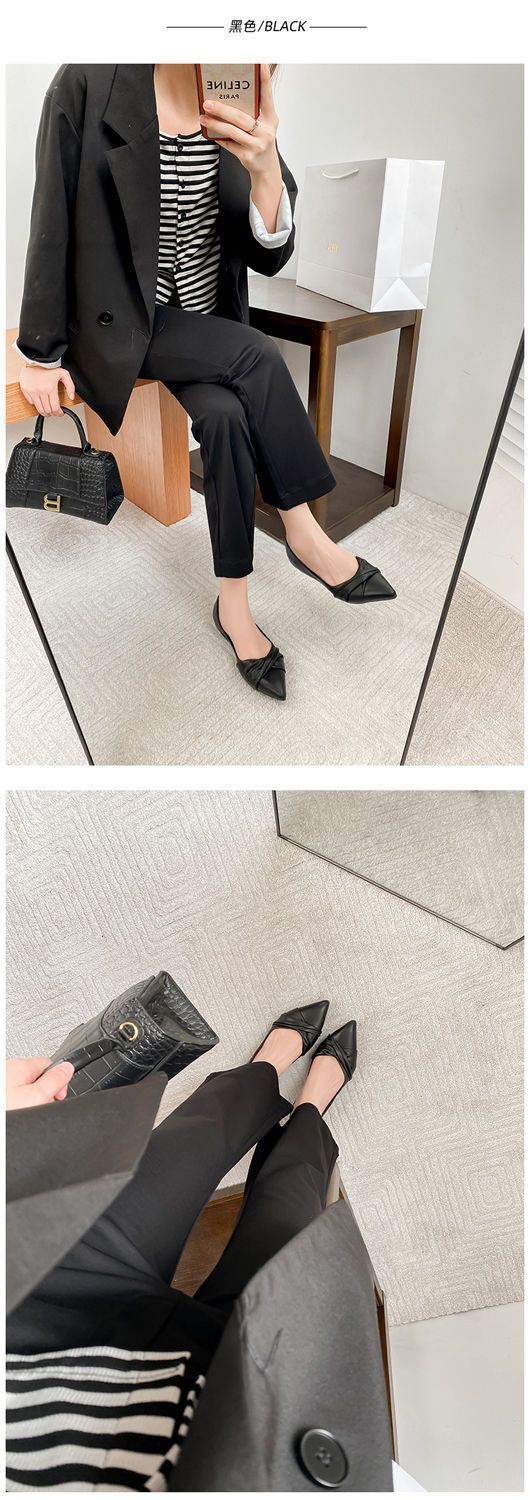 봄 2023 새로운 스타일 샤넬 스타일 뾰족한 플랫 슈즈 여성용 완두콩 신발 스커트 늦은 밤 스타일 부드러운 신발스토어 가기