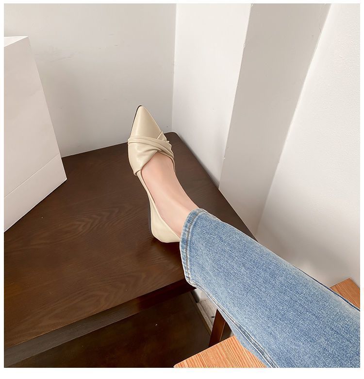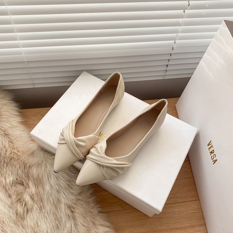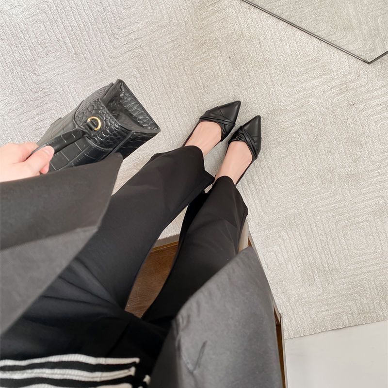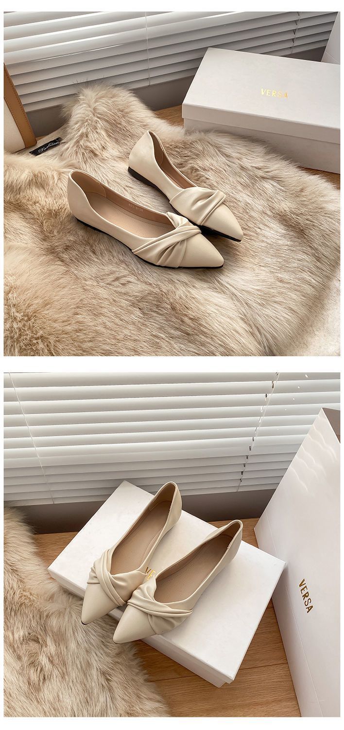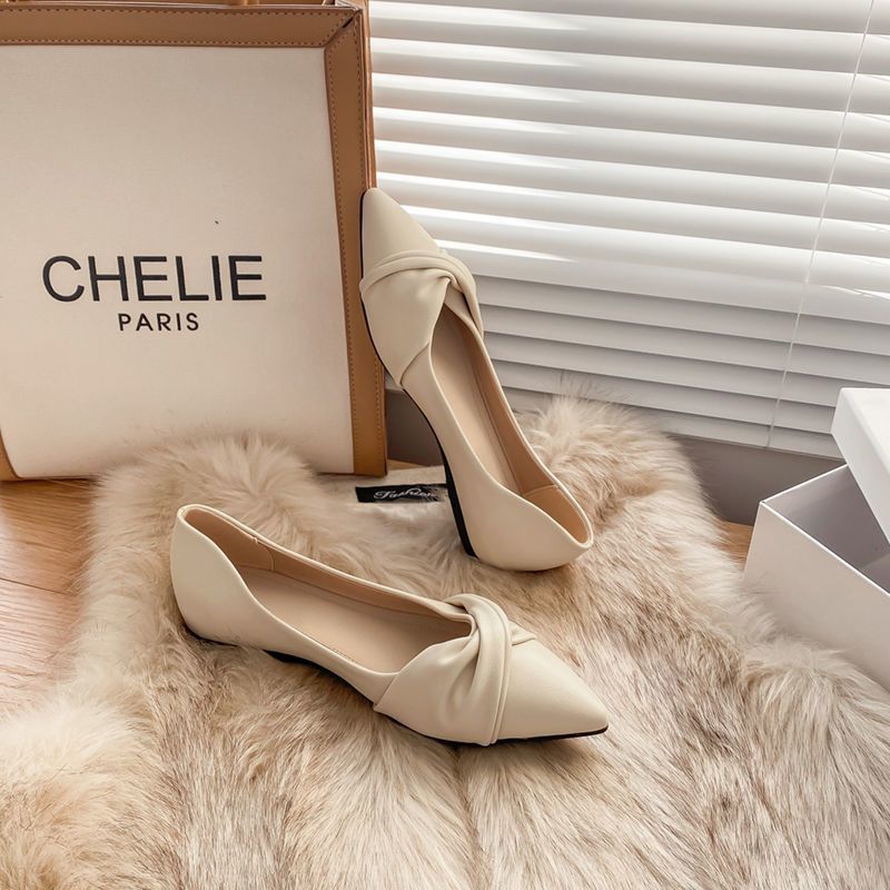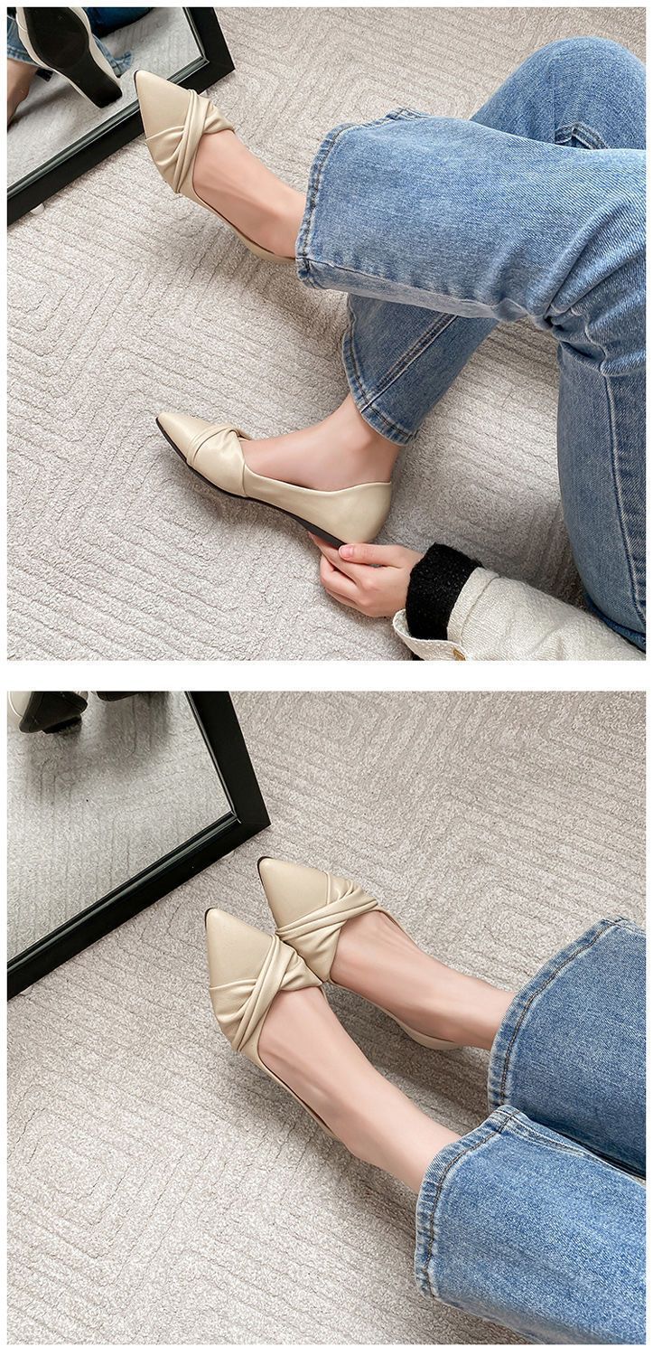 봄 2023 새로운 스타일 샤넬 스타일 뾰족한 플랫 슈즈 여성용 완두콩 신발 스커트 늦은 밤 스타일 부드러운 신발스토어 가기