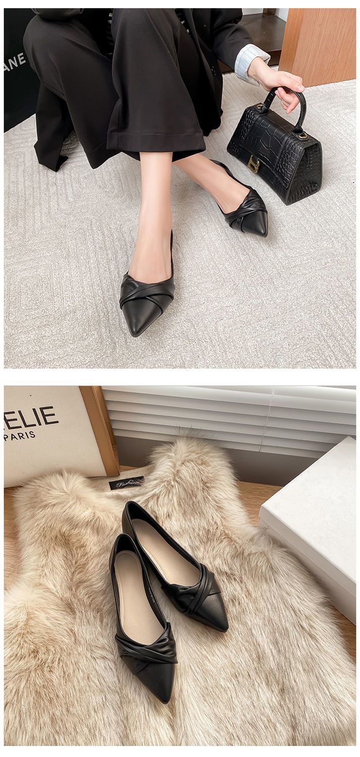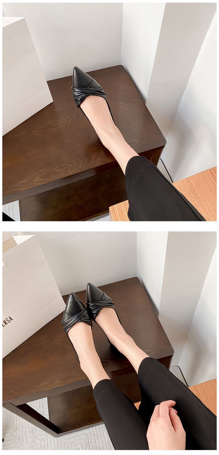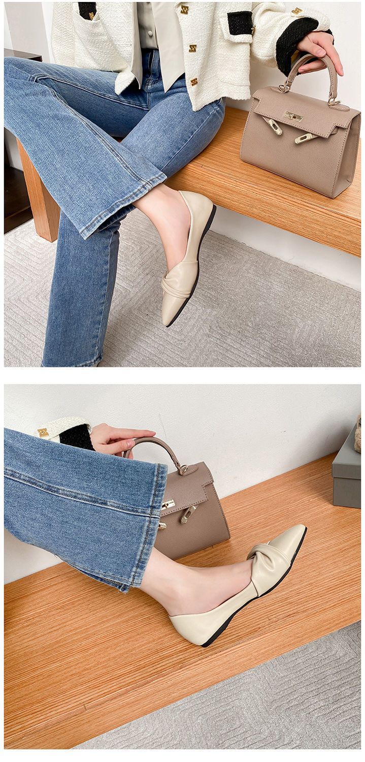 봄 2023 새로운 스타일 샤넬 스타일 뾰족한 플랫 슈즈 여성용 완두콩 신발 스커트 늦은 밤 스타일 부드러운 신발