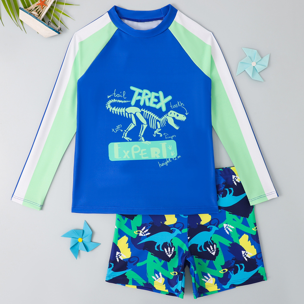어린이 수영복 소년 긴팔 선 스크린 수영복 소년 수영복 박스 만화 공룡 빠른 건조 국경 수영복