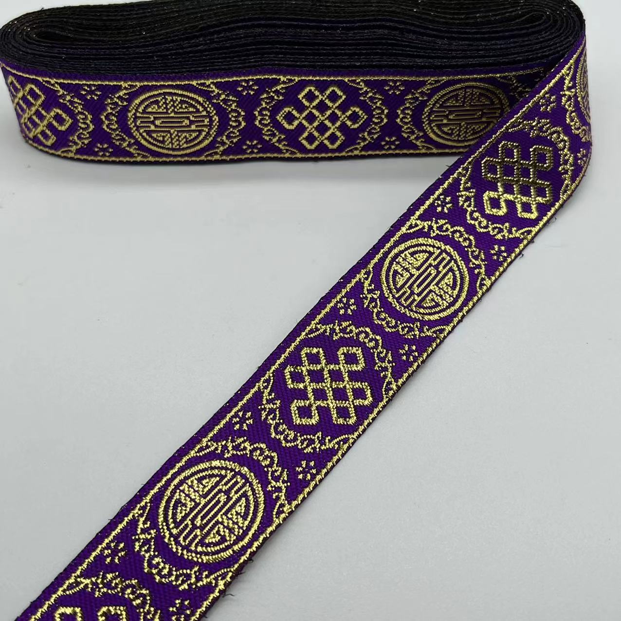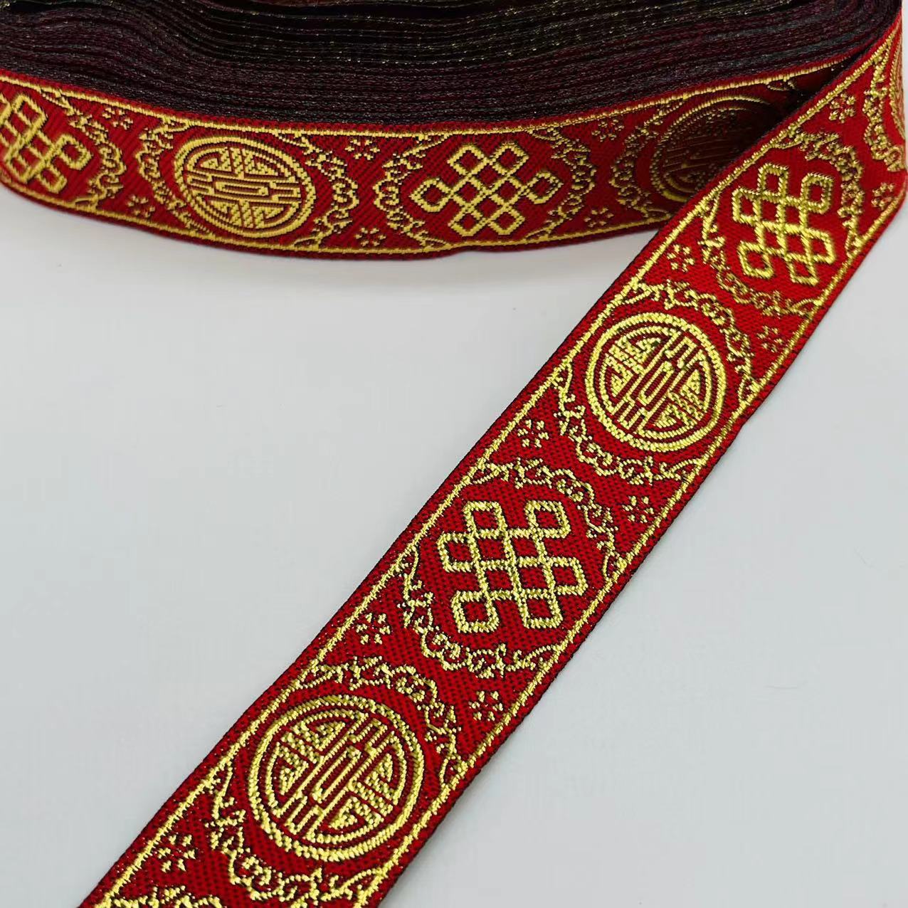 공장 직접 국가 스타일 금색과 실버 실크 자카드 리본 밝은 실크 골동품 중국 의류 리본 의류 커튼 벨트 액세서리