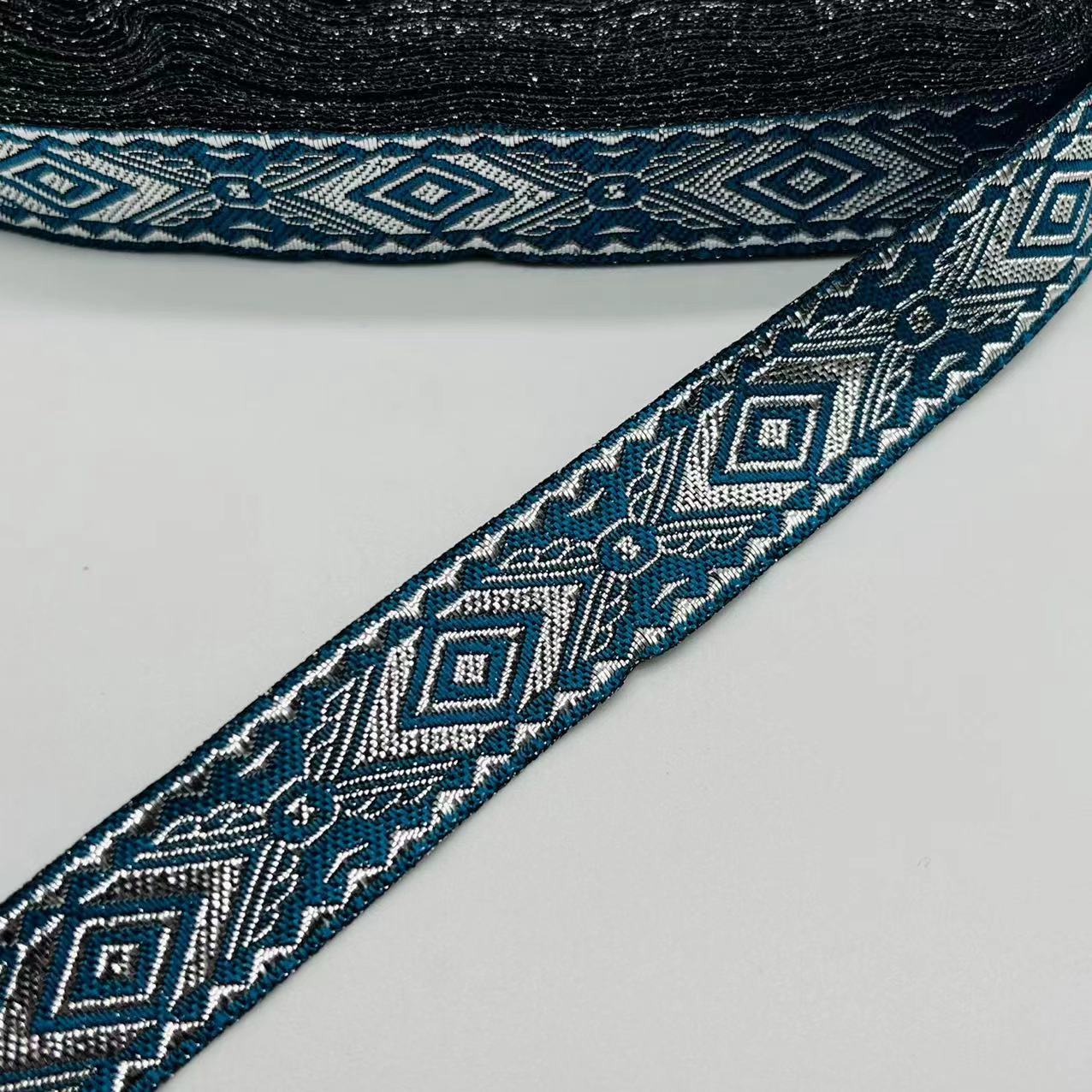 • 실버 기하학 사파이어 블루 * 2.0cm * 자카드 리본