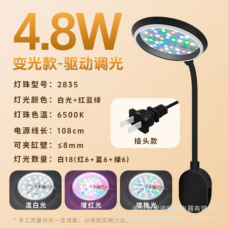 • 플러그가 있는 4.8W 미니 클립 램프, 전체 스펙트럼 색상 변경