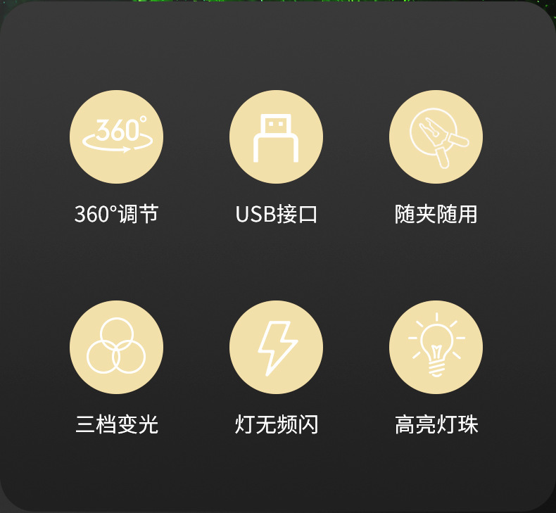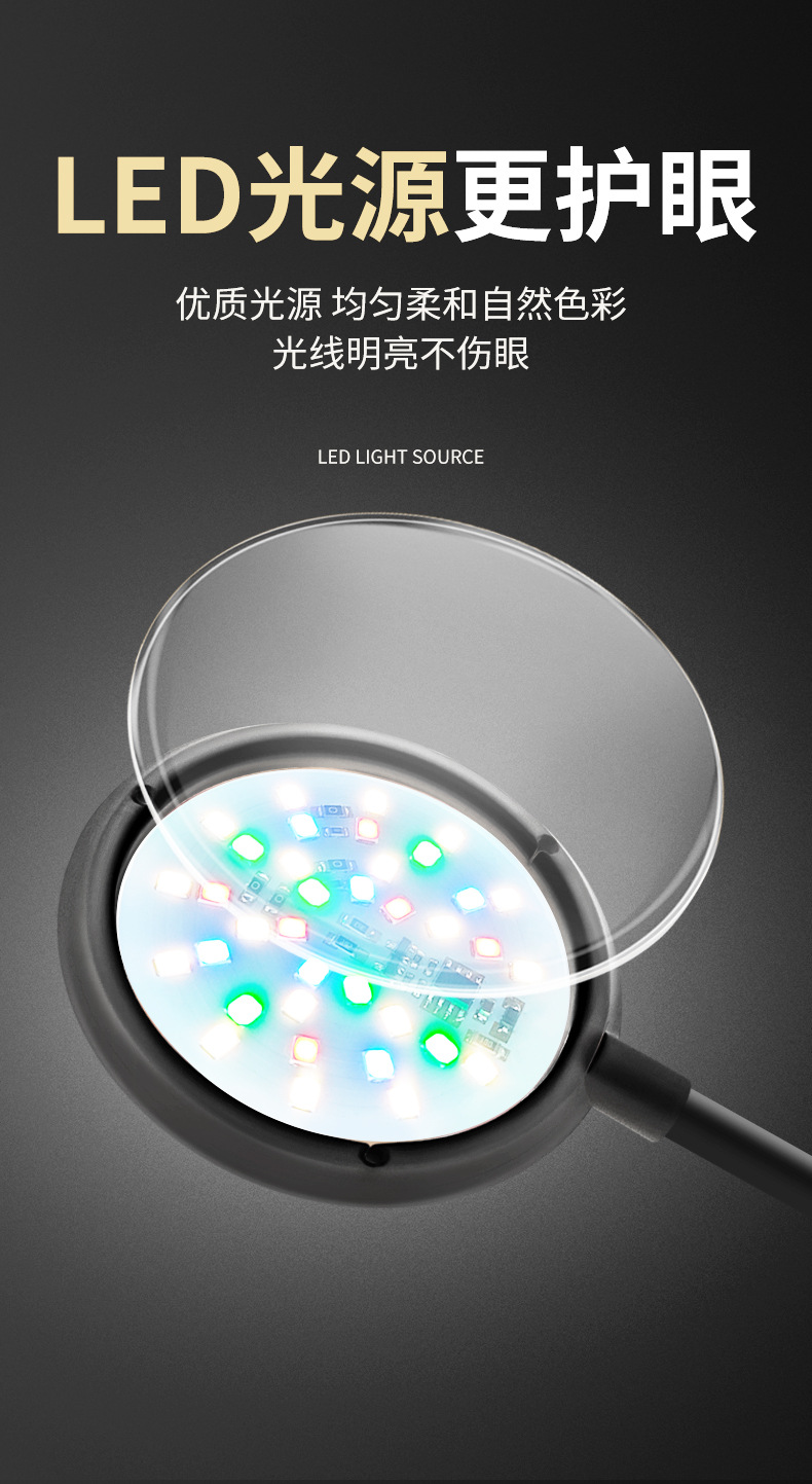 • 전체 스펙트럼 색상 변경 USB 미니 4.8W 클립 램프 블랙