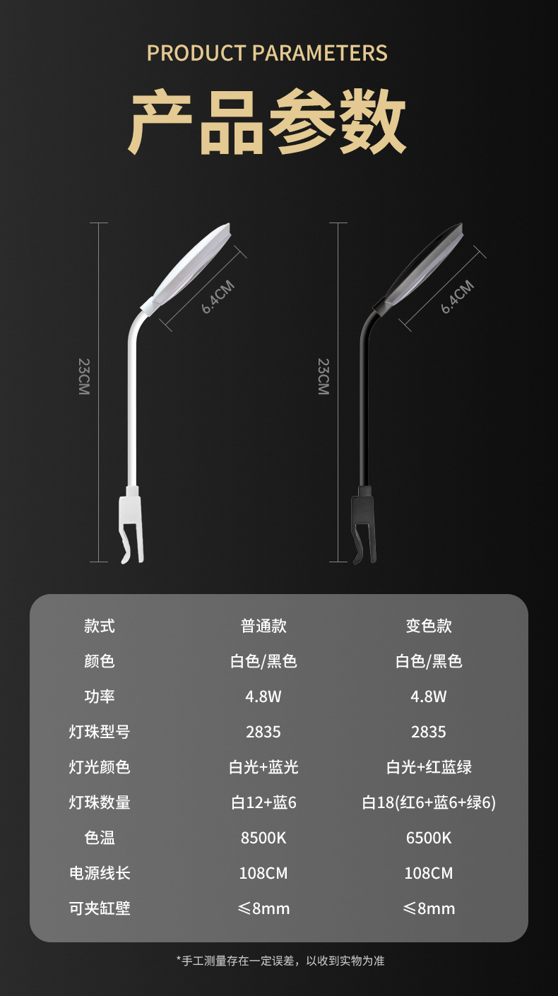 어항 led 조명 클립 라이트 하이 컬러 양동이 물고기 구피 작은 탱크 전용 미니 장식 풀 스펙트럼 조류 폭발 빛