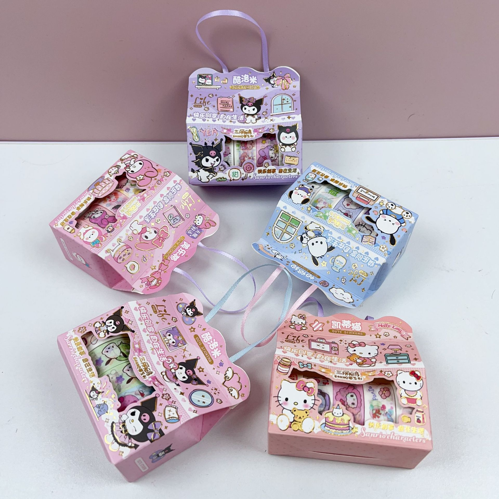 국경 간 산리오 휴대용 및 종이 테이프 소녀 어린이 diy 창조적 인 저널 스티커 테이프 장난감 문구 선물스토어 가기