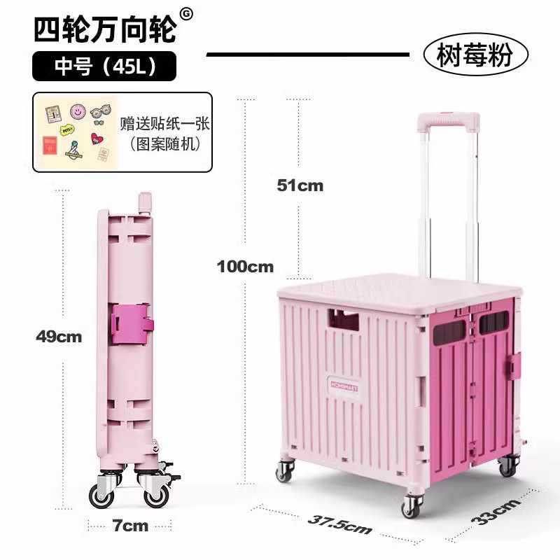 • ☆★【업그레이드 4륜】 중간 사이즈 45L 라즈베리 핑크 + 덮개 증정☆★