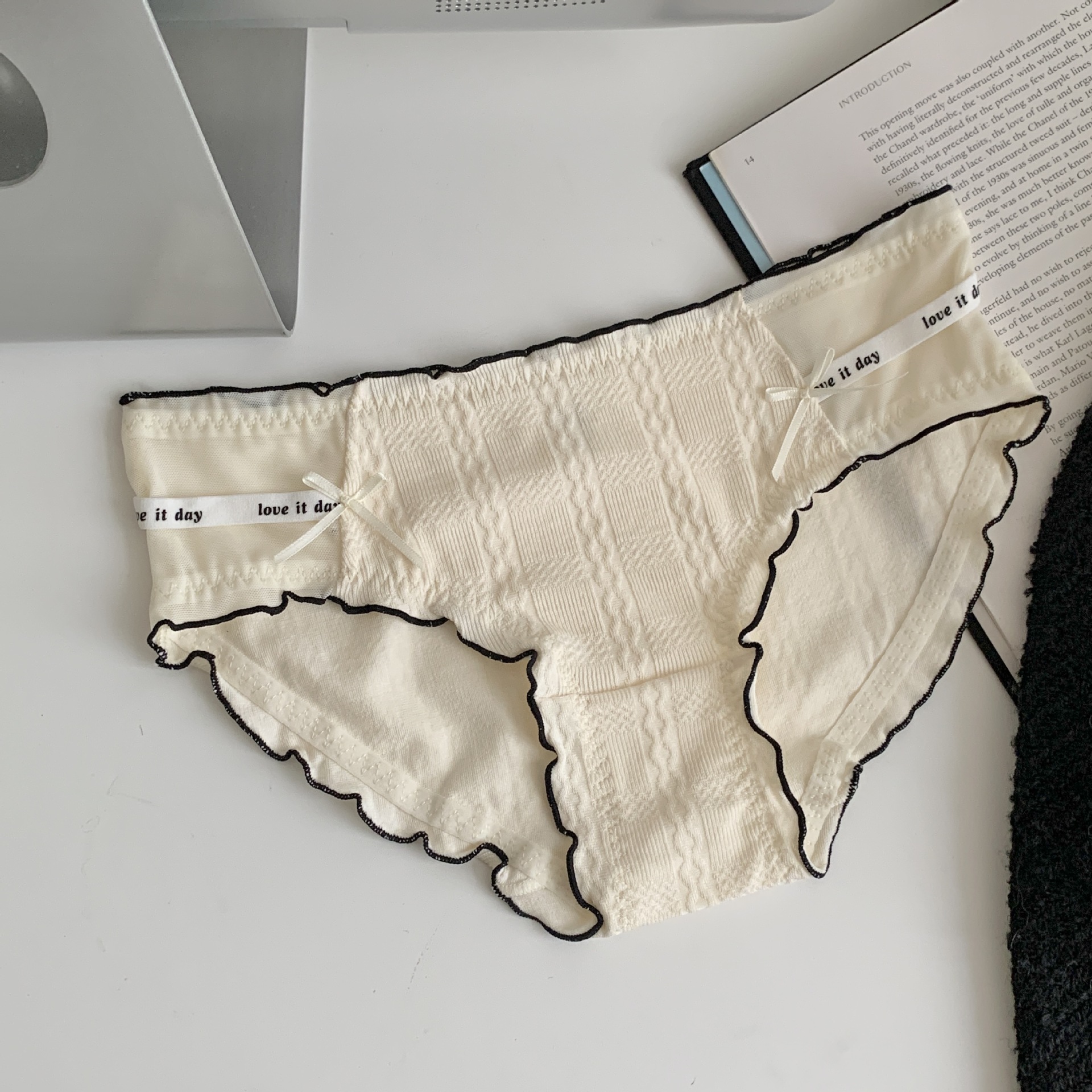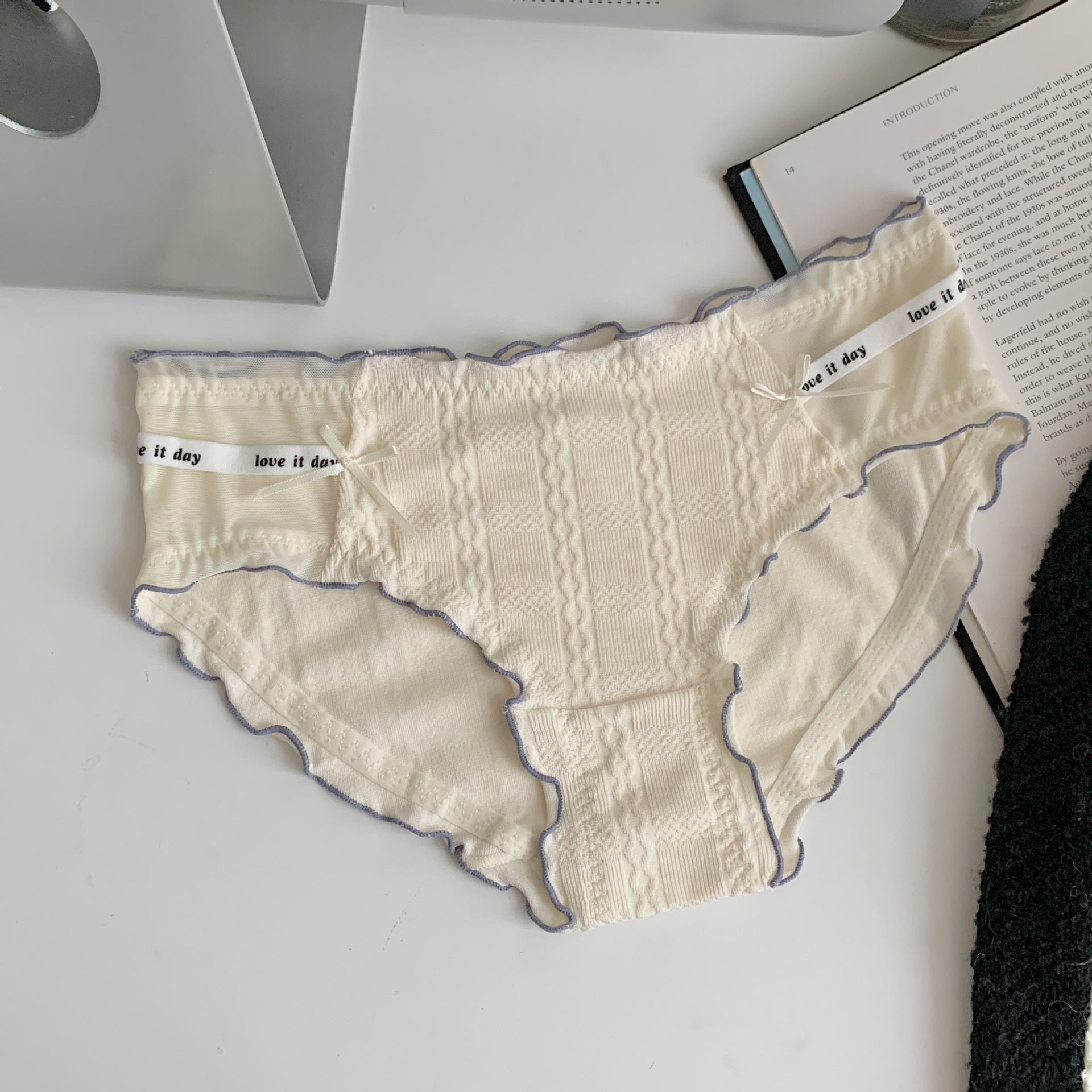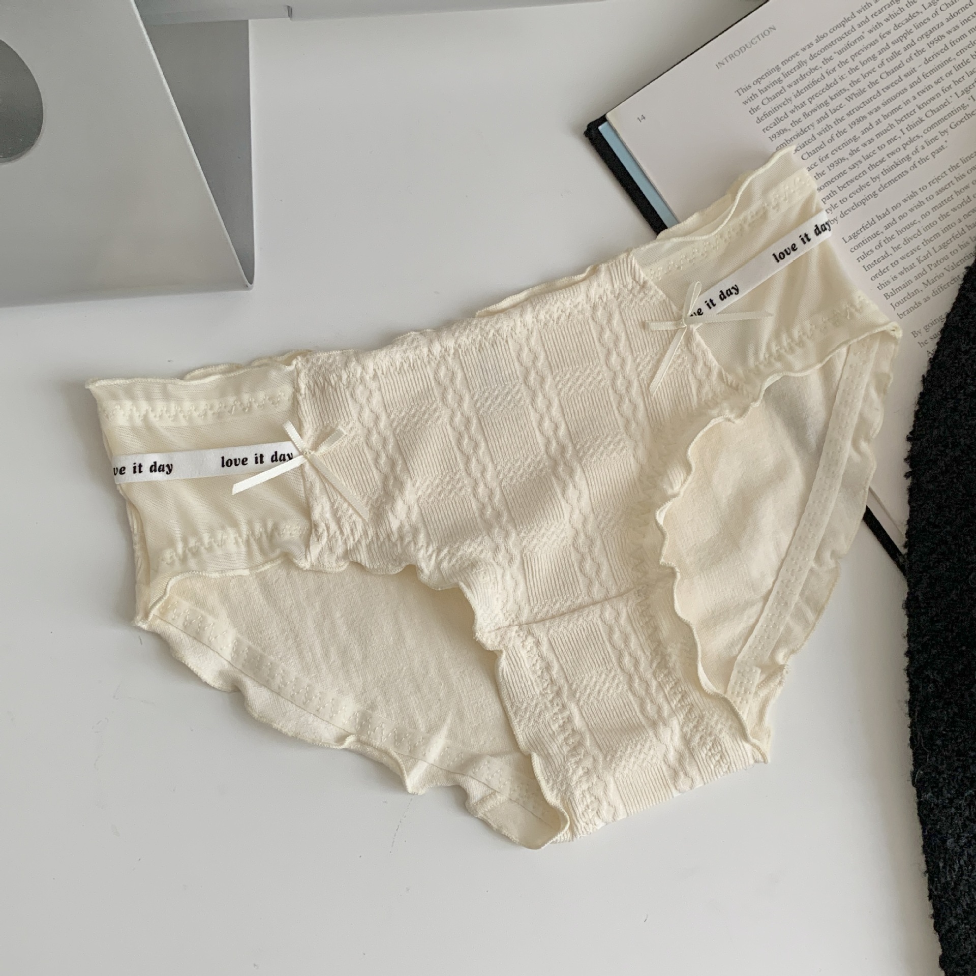 여자의 일본 스타일 순수한 소원 스타일 나무 귀 가장자리 여자의 속옷 여자의 중간 허리 편안한 면 가랑이 여자의 섹시한 팬티스토어 가기