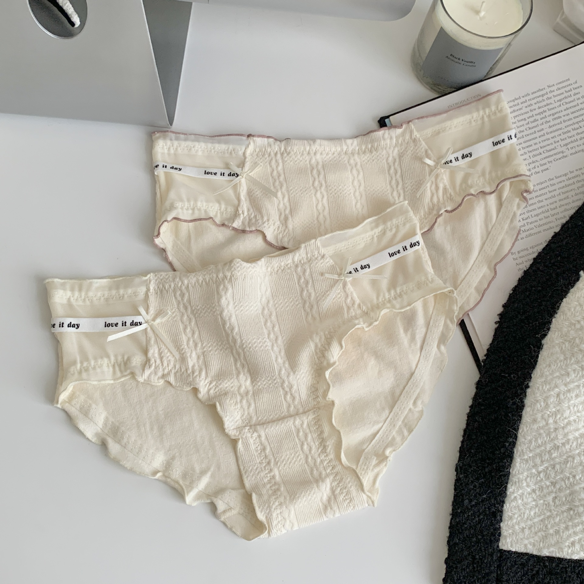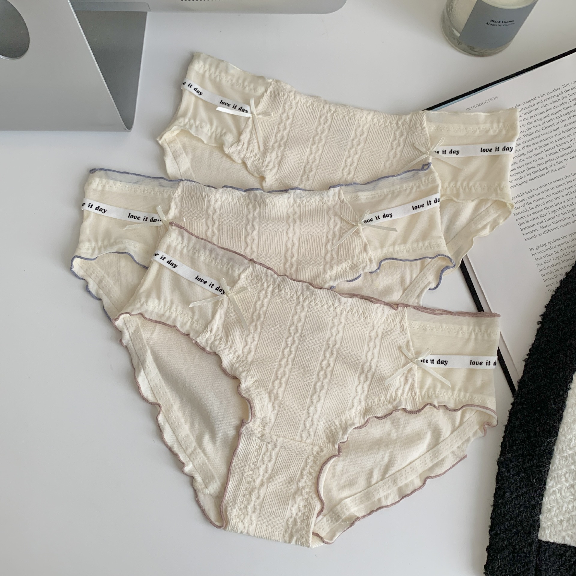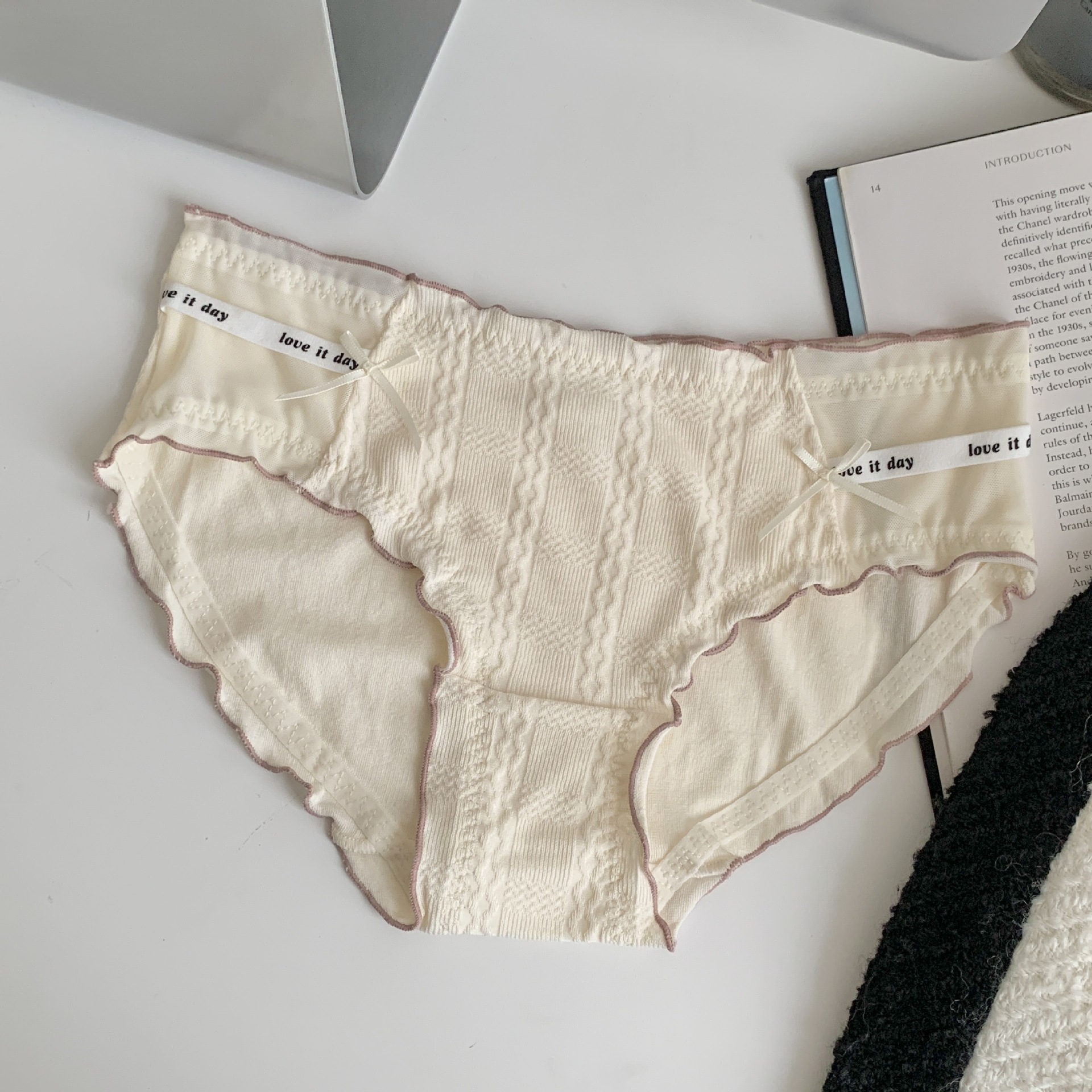 여자의 일본 스타일 순수한 소원 스타일 나무 귀 가장자리 여자의 속옷 여자의 중간 허리 편안한 면 가랑이 여자의 섹시한 팬티스토어 가기