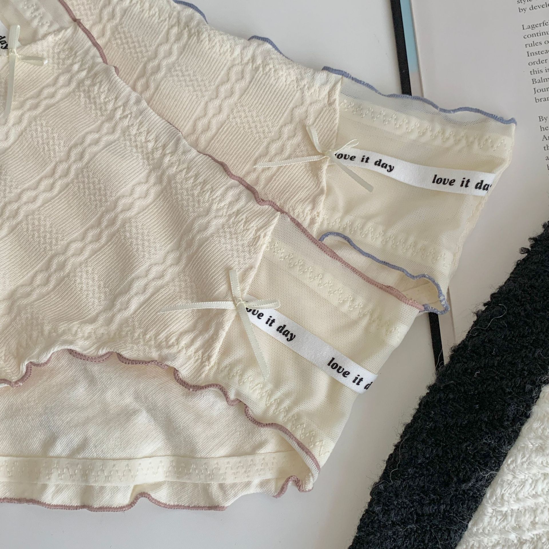 여자의 일본 스타일 순수한 소원 스타일 나무 귀 가장자리 여자의 속옷 여자의 중간 허리 편안한 면 가랑이 여자의 섹시한 팬티