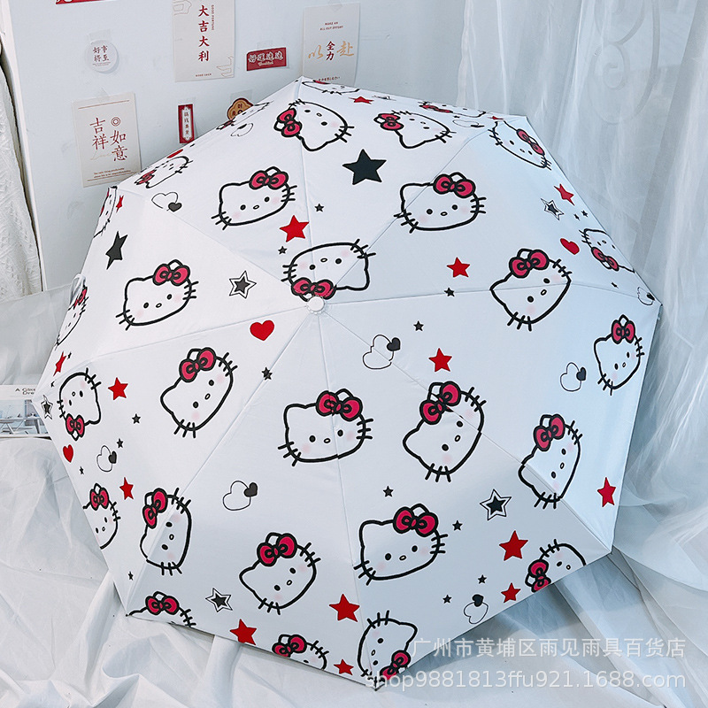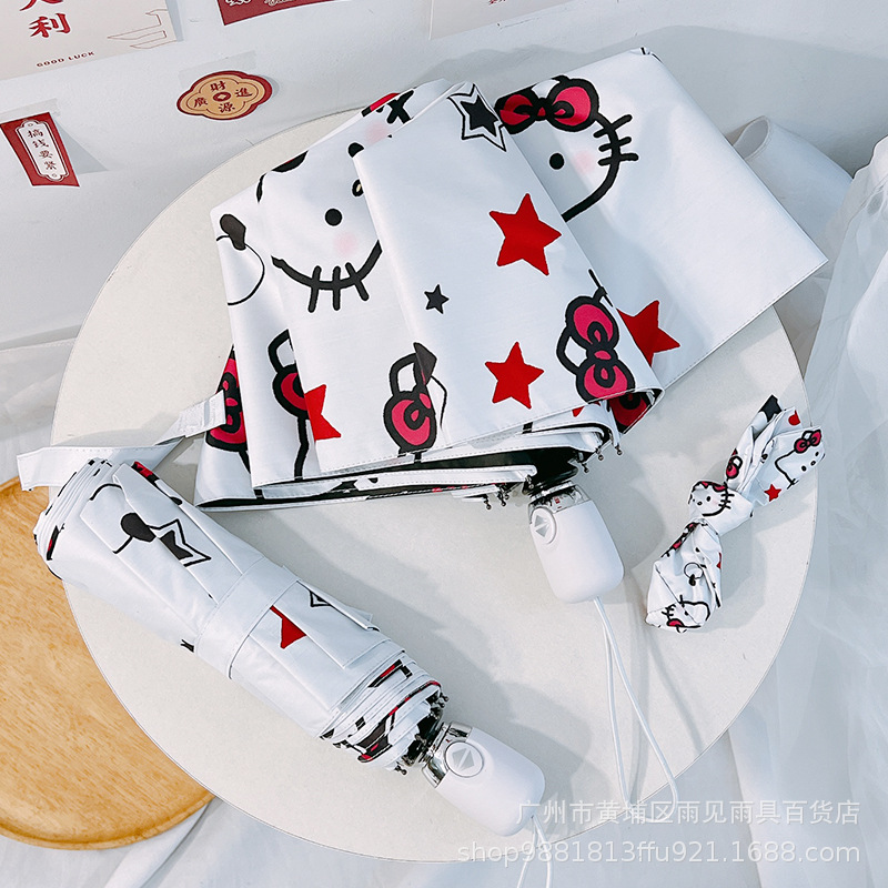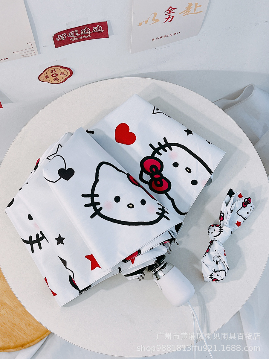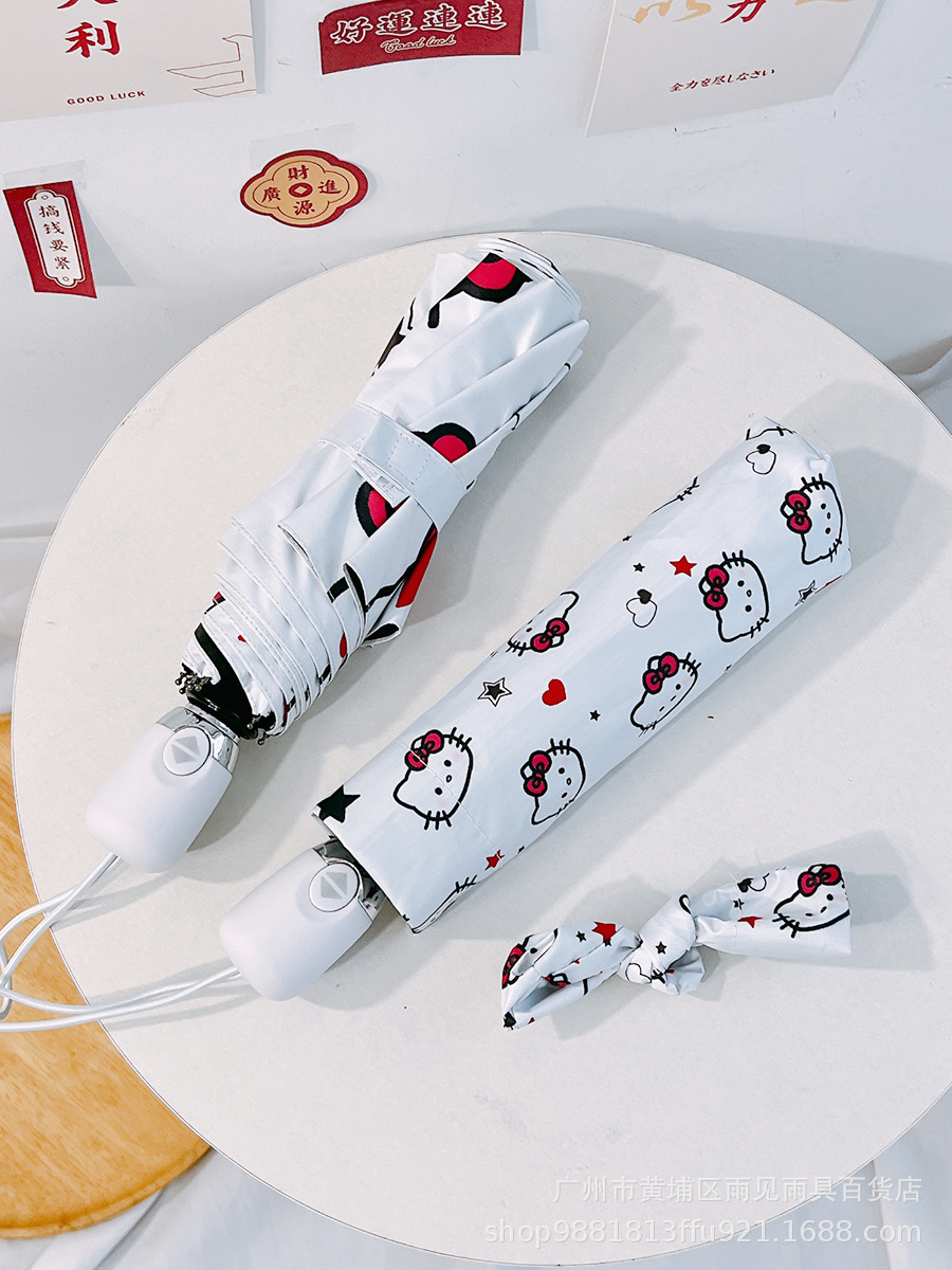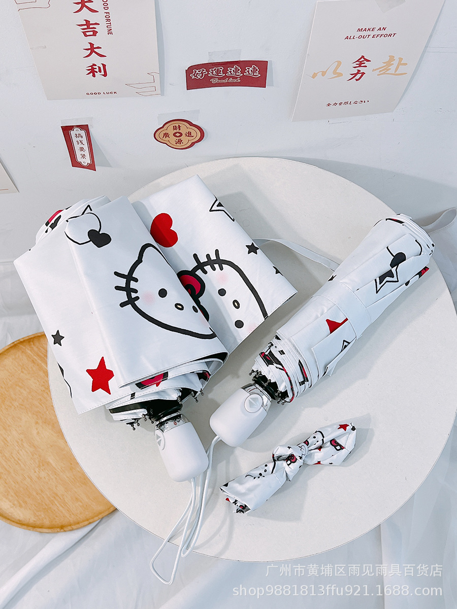 산리오 헬로 키티 여성 자동 태양 우산 맑은 우산 접는 검은 고무 태양 보호 UV 보호 KT스토어 가기