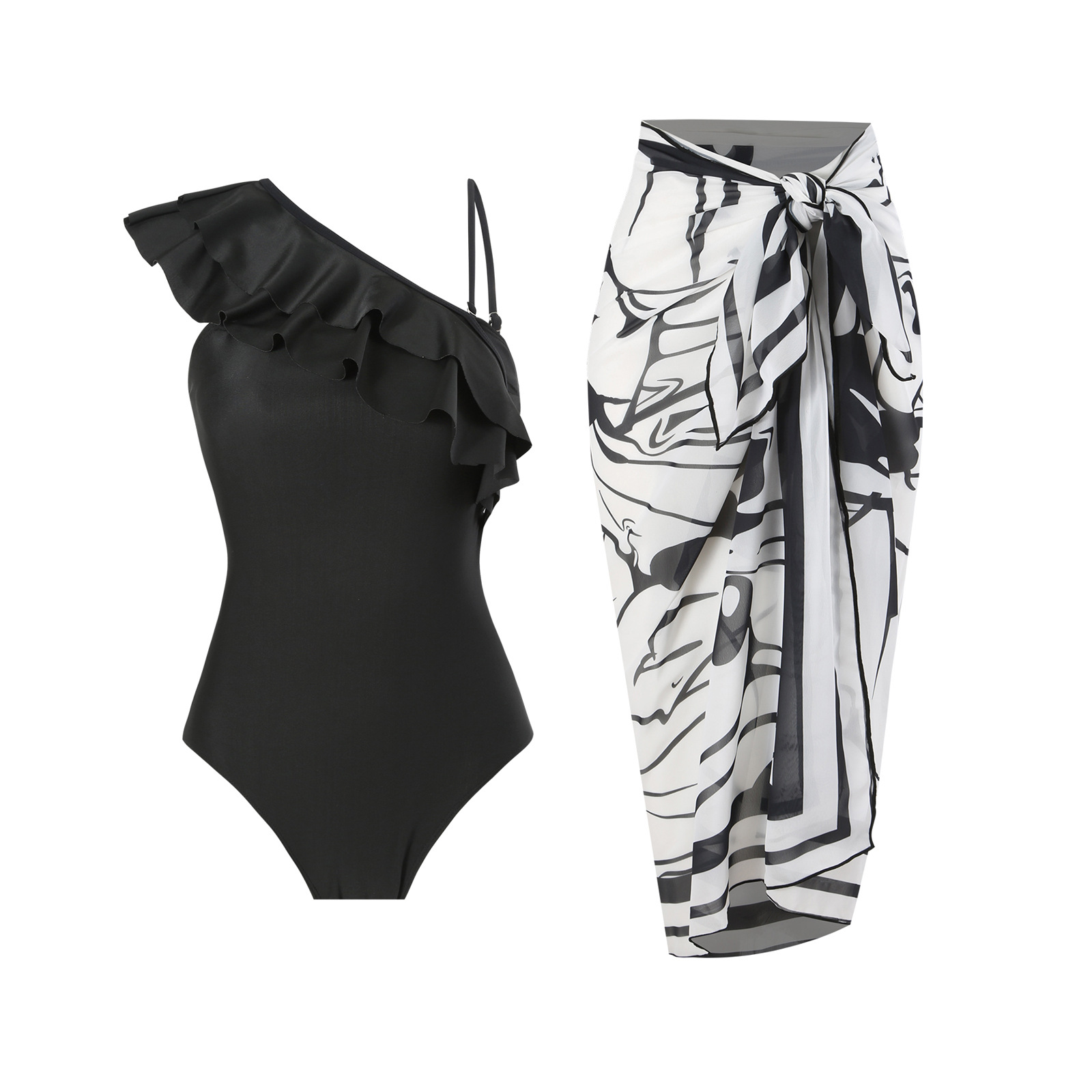 2025现货欧美性感连体泳衣女荷叶边两件套网纱裙热卖爆款泳装套装