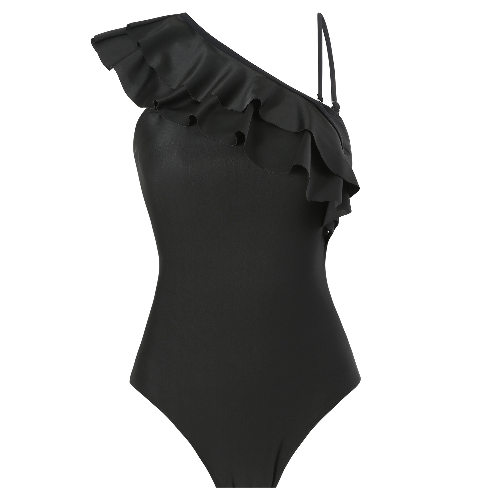 2025 새로운 핫 세일 스팟 원피스 러플 솔리드 컬러 수영복 유럽과 미국의 복고풍 원 숄더 폴리에스테르 스커트 수영복 세트스토어 가기