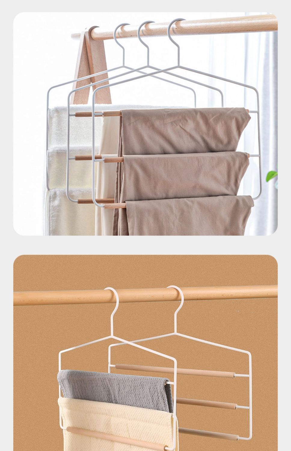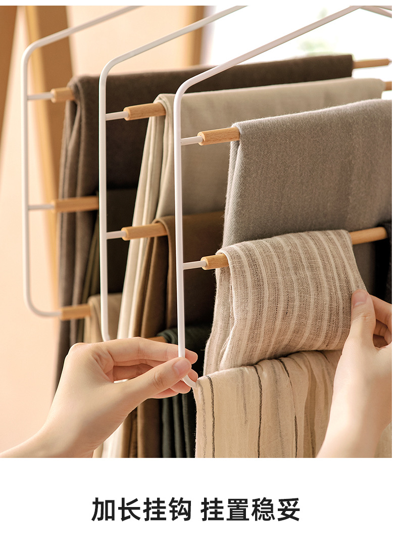 너도밤나무 철제 다층 바지걸이 바지클립 접이식 다기능 바지걸이 수납용품 레트로스토어 가기