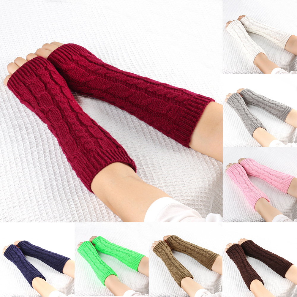 트위스트 긴 장갑 울 따뜻한 8 자 트위스트 가짜 슬리브 손가락 노출 가짜 슬리브 크로스 보더 가을과 겨울 니트 팔 슬리브스토어 가기