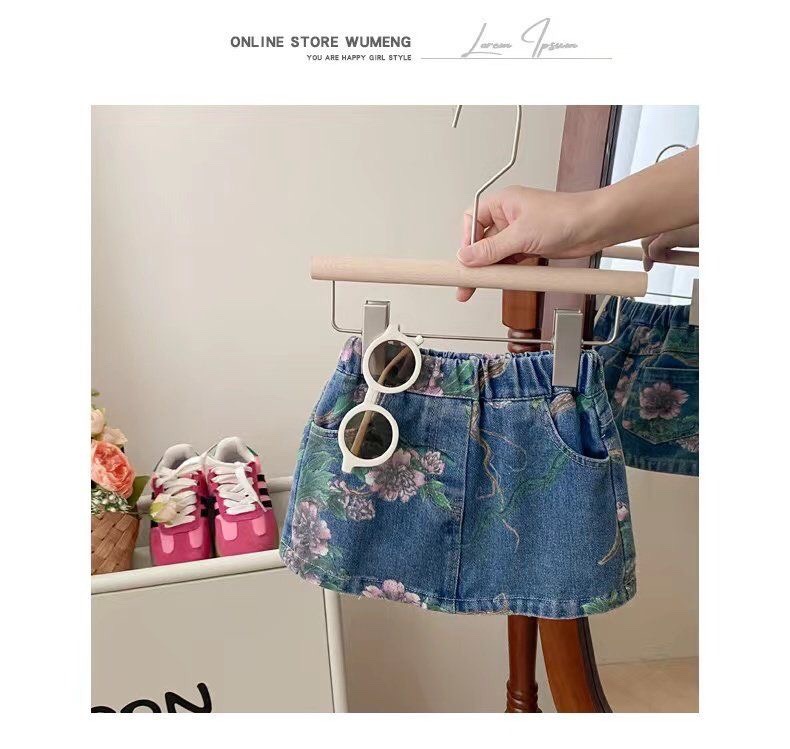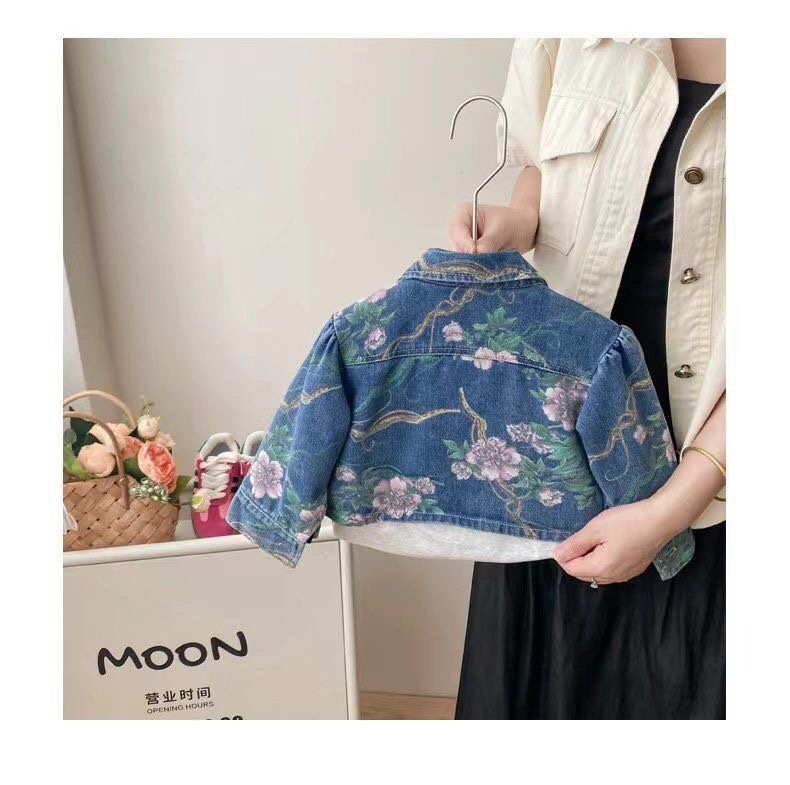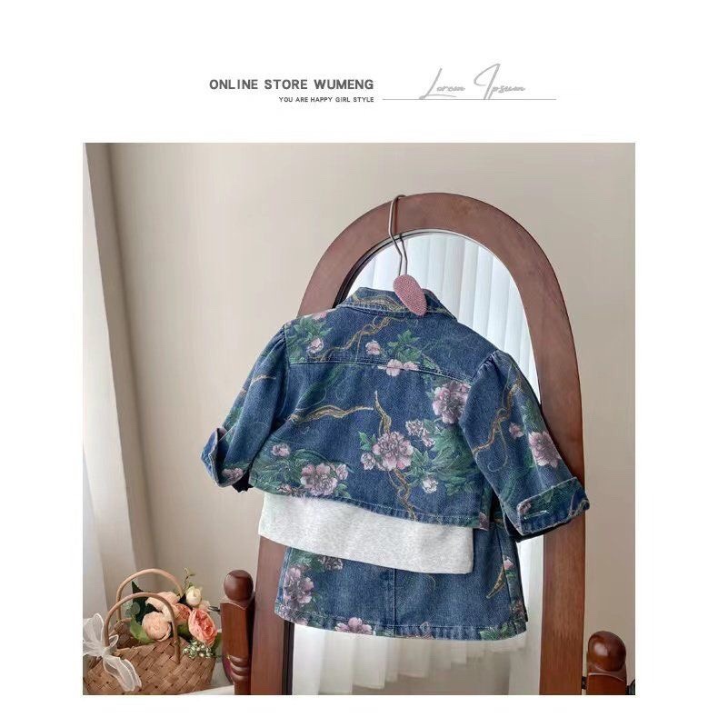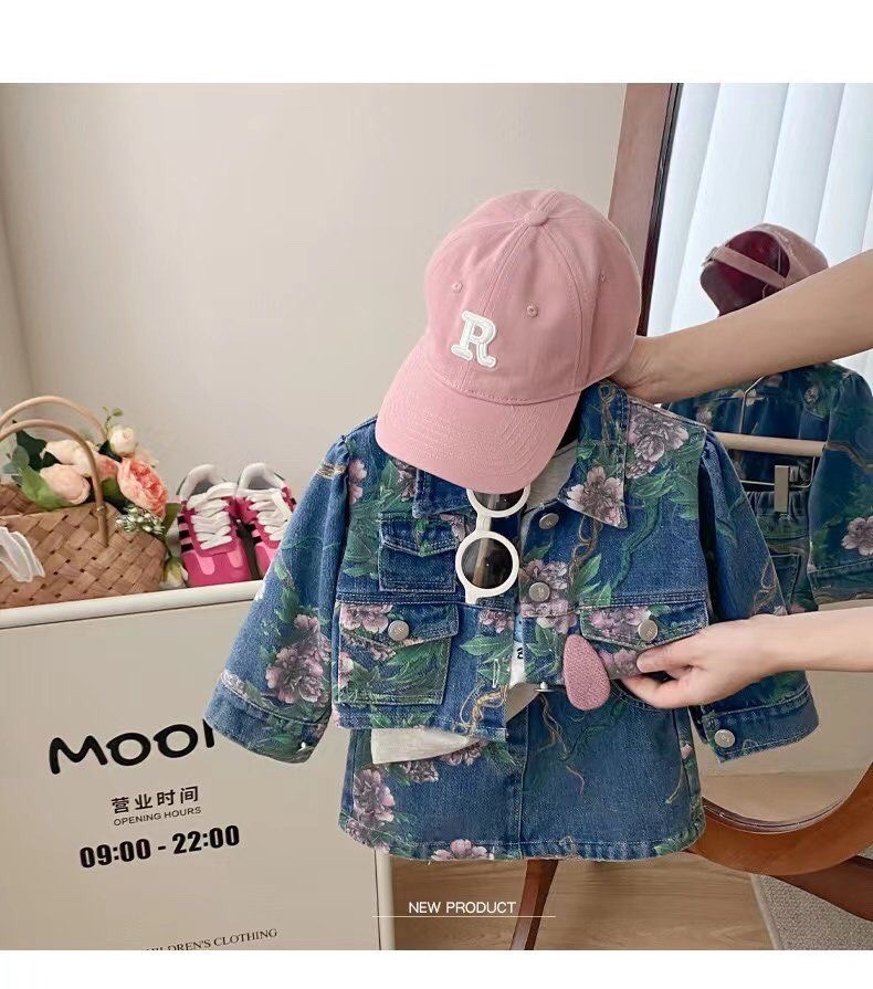 2026 가을 겨울 신상 여아 데님 세트, 패셔너블하고 귀여운 꽃무늬 데님 재킷과 스커트 투피스 세트스토어 가기