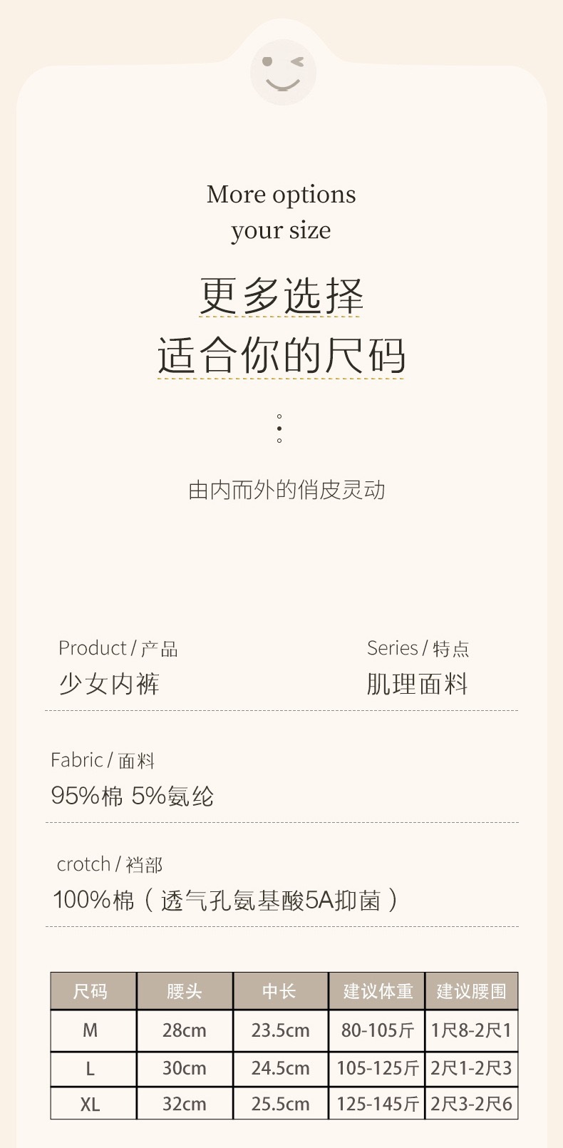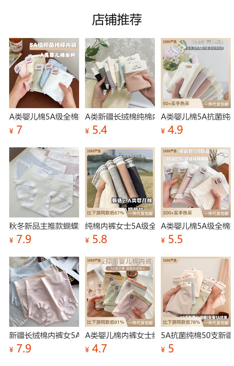 클래스 A 신장 롱 스테이플 면 원활한 면 속옷 여성용 아미노산 5A 항균 가랑이 면 소녀 여행 헤드