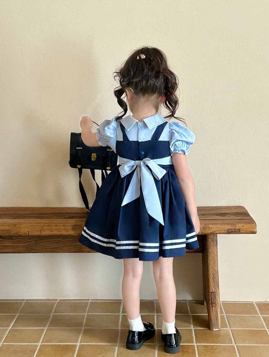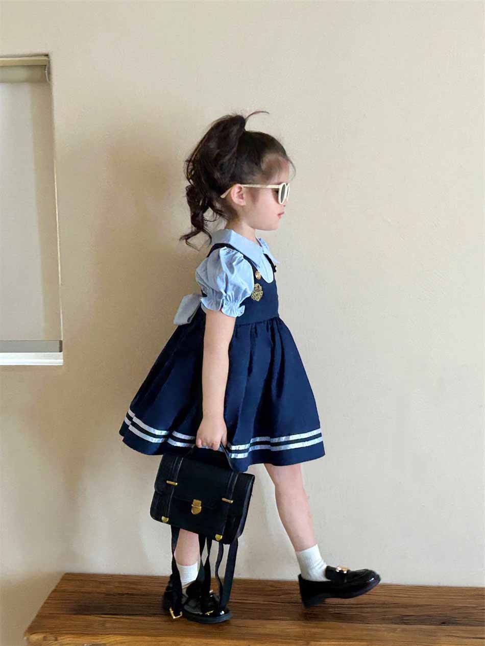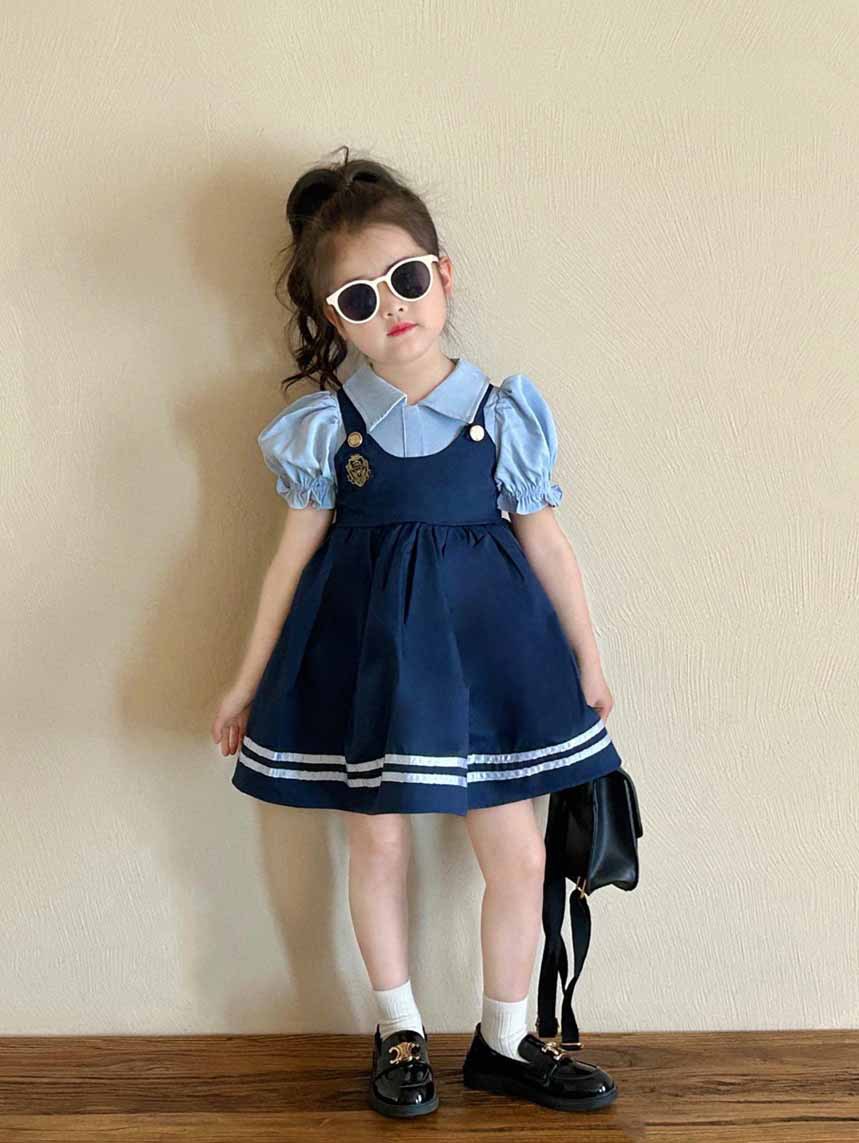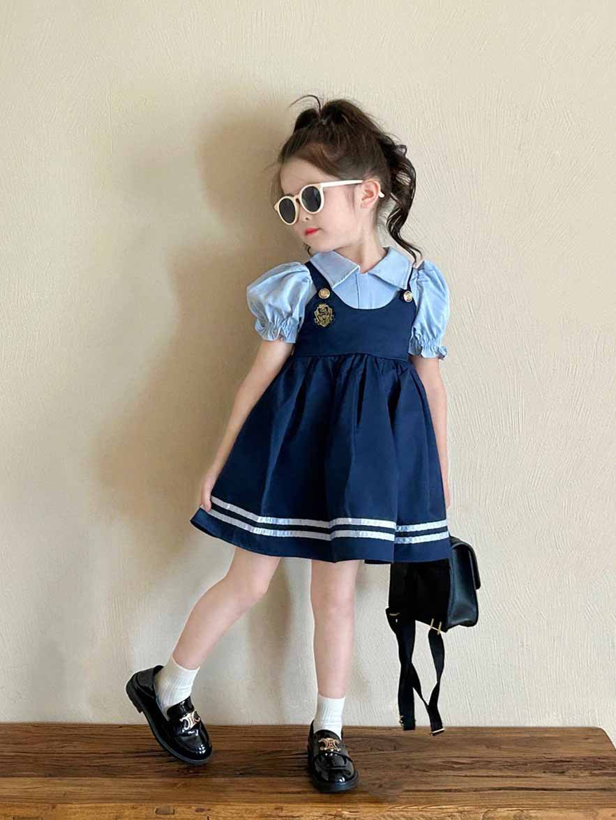 여자 원피스 여름 새로운 가짜 두 조각 대학 스타일 버블 슬리브 공주 치마 어린이 머리카락의 세대스토어 가기