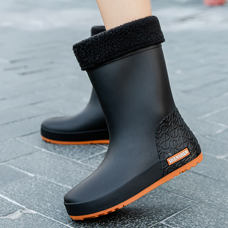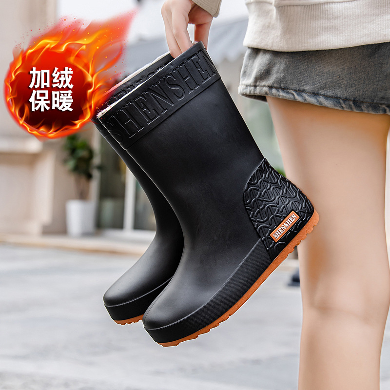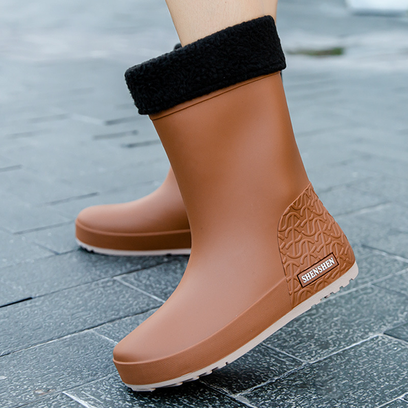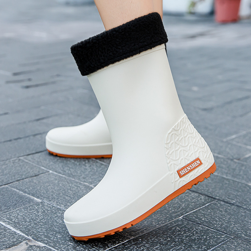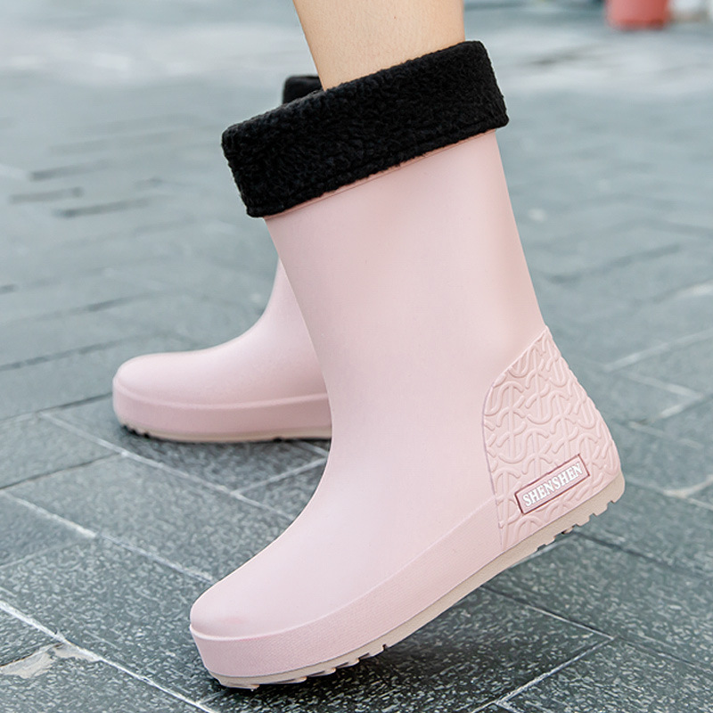 여성용 레인부츠, 성인용 중간 길이 방수화, 벨벳 안감 여성용 워터부츠, 미끄럼 방지 주방 및 야외 작업화, 패셔너블하고 다용도스토어 가기
