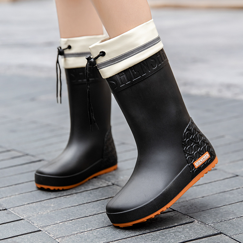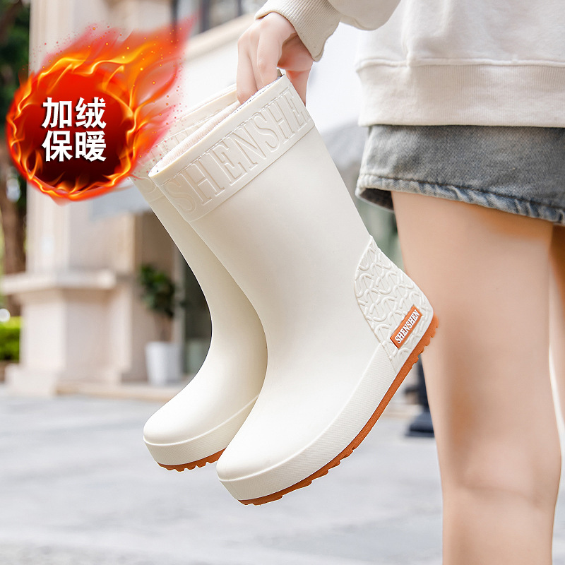 여성용 레인부츠, 성인용 중간 길이 방수화, 벨벳 안감 여성용 워터부츠, 미끄럼 방지 주방 및 야외 작업화, 패셔너블하고 다용도
