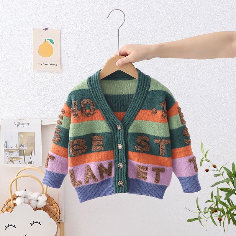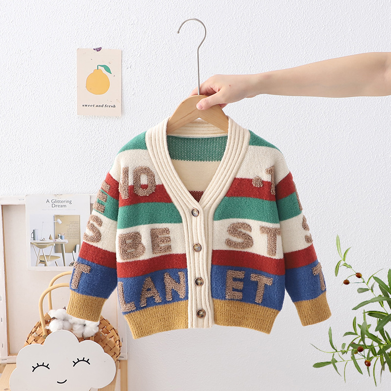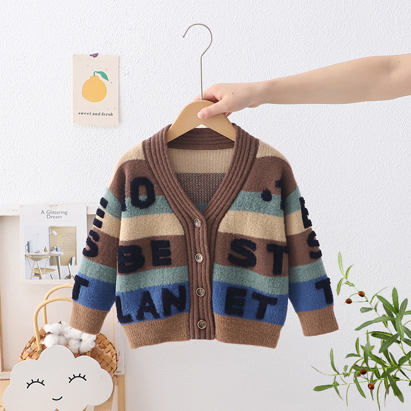 새로운 소년 스웨터 가디건 세련된 수건 자수 아기 한국 편지 재킷 전문 헤어 어린이 스웨터스토어 가기