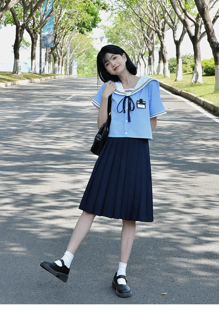 • 여성용 네이비 스타일 셔츠 + 넥타이