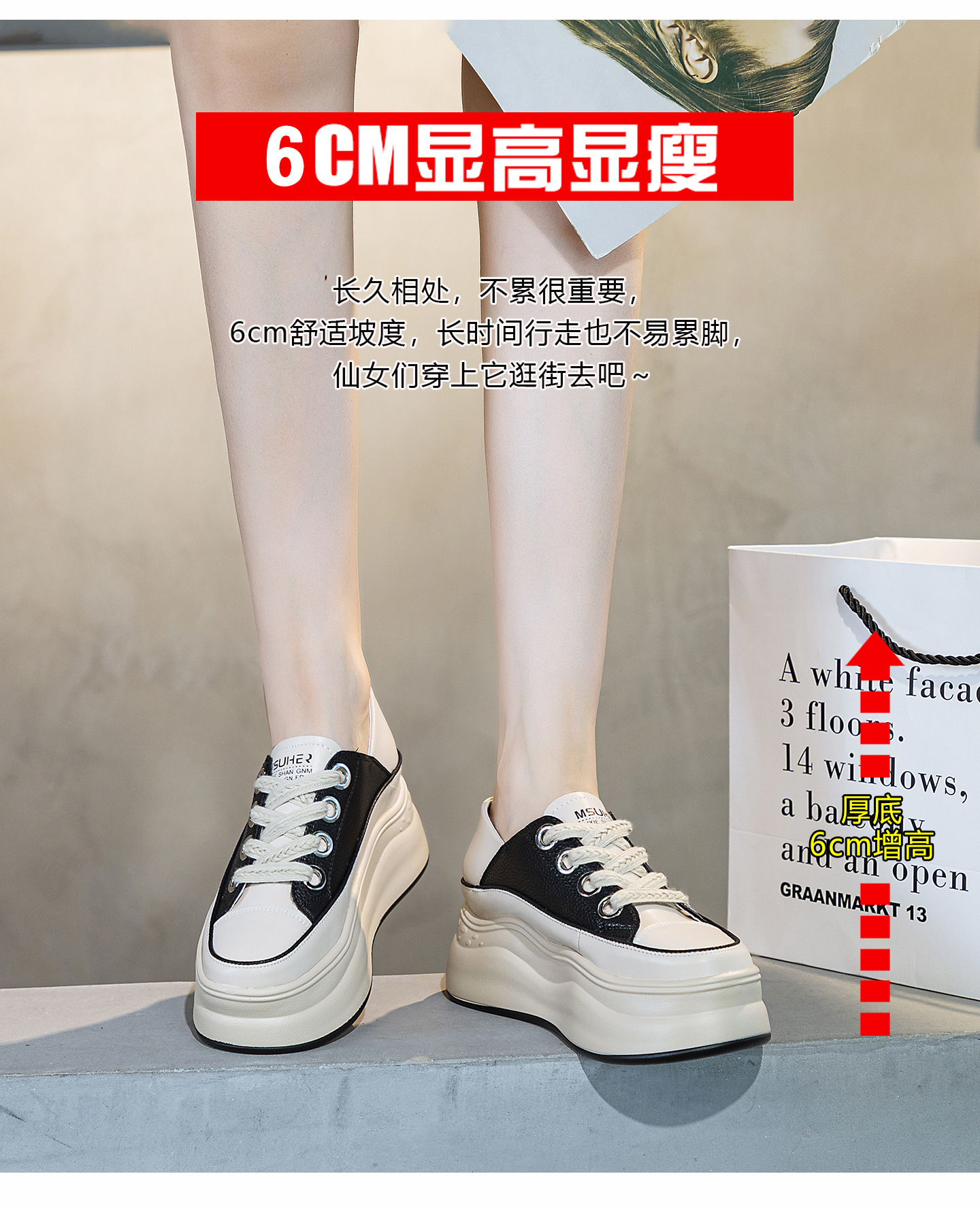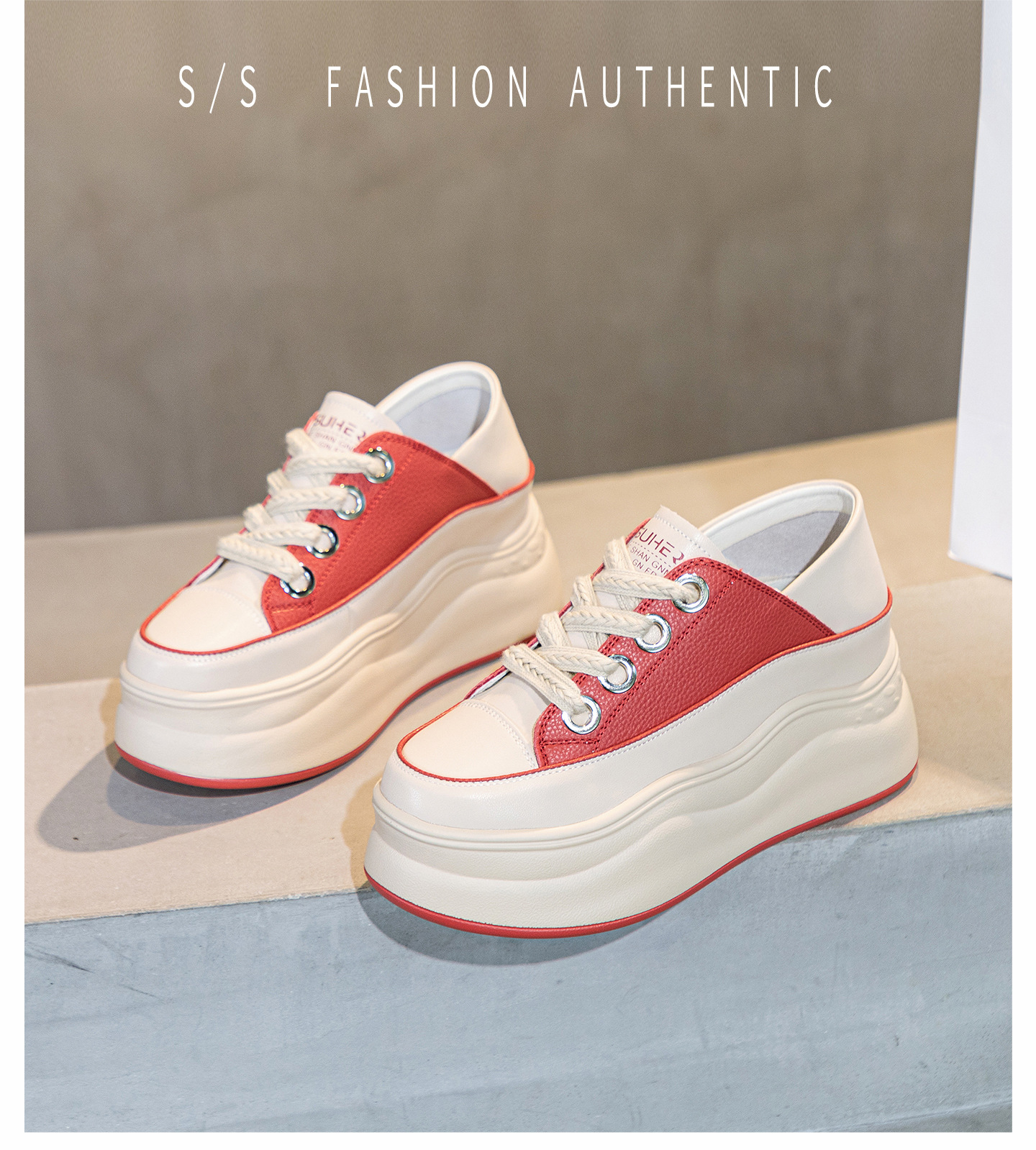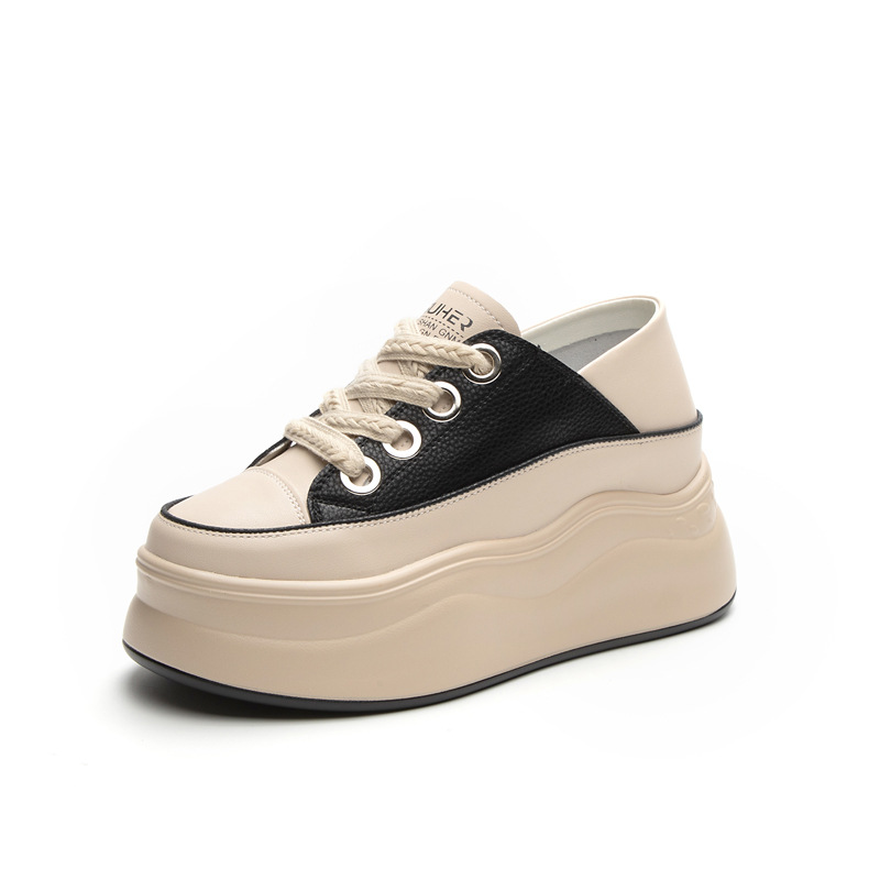 가을 2023 새로운 스타일 내부 높이 증가 가죽 두꺼운 밑창 캐주얼 흰색 신발 웨지 색상 일치 학생 신발 토레 신발 여성 신발스토어 가기