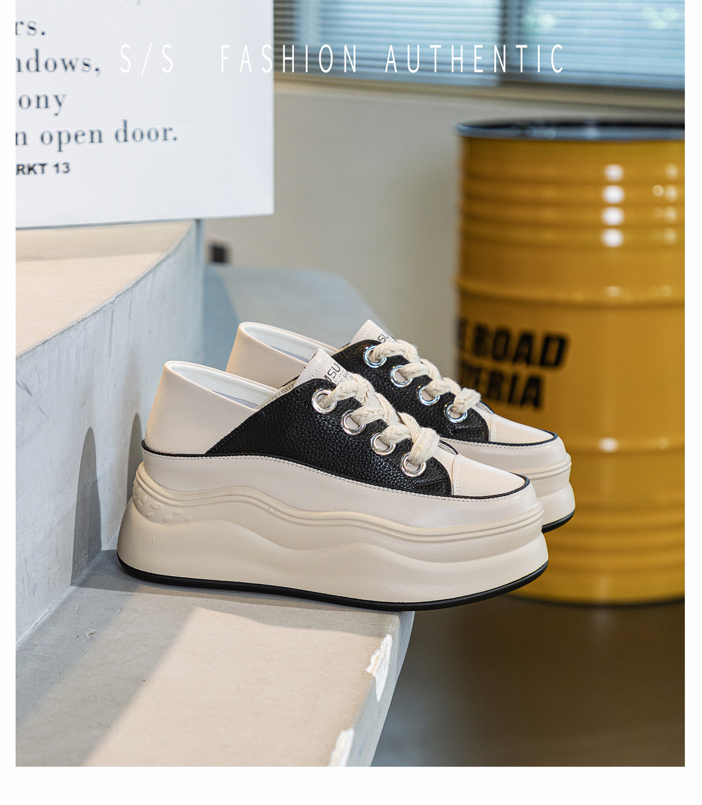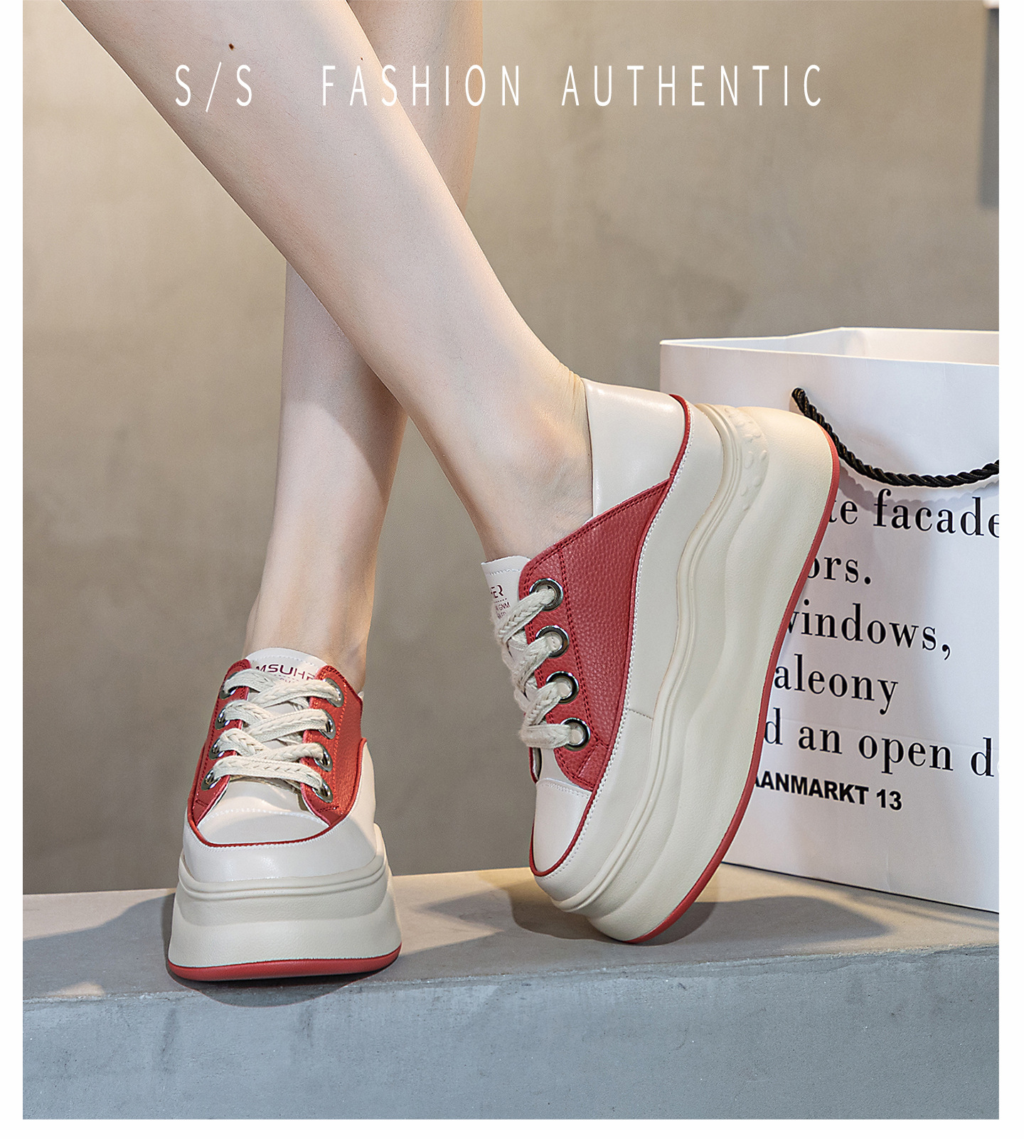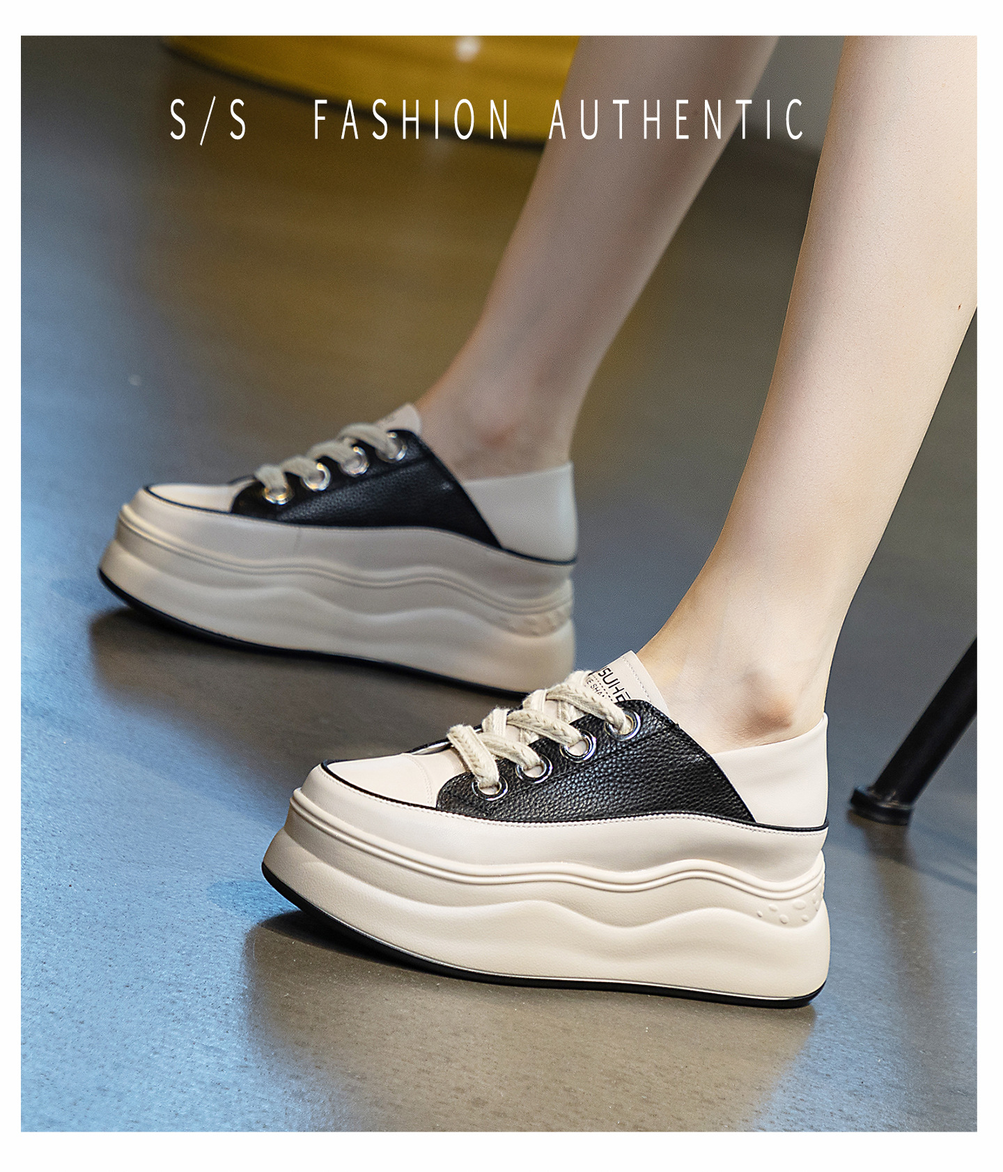가을 2023 새로운 스타일 내부 높이 증가 가죽 두꺼운 밑창 캐주얼 흰색 신발 웨지 색상 일치 학생 신발 토레 신발 여성 신발스토어 가기