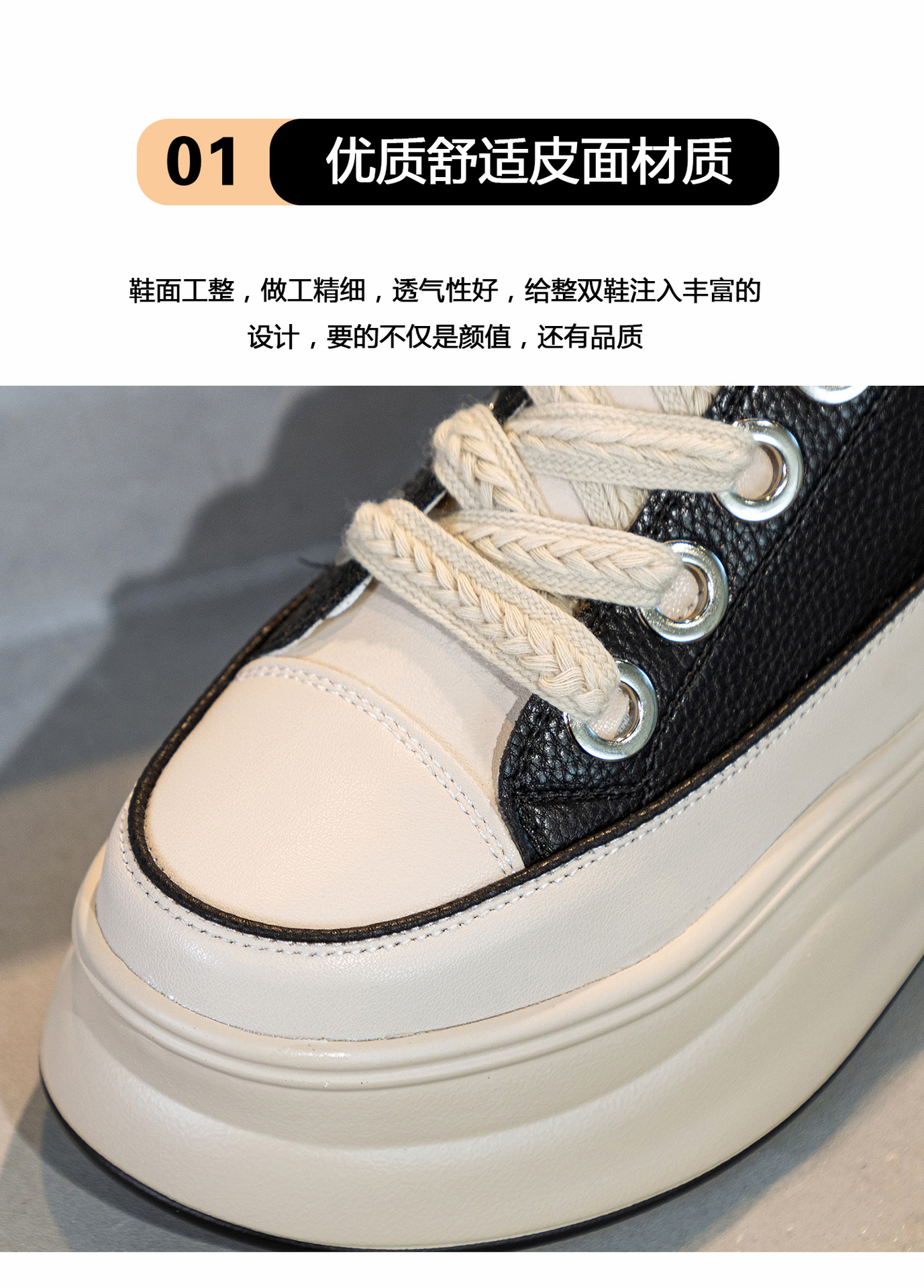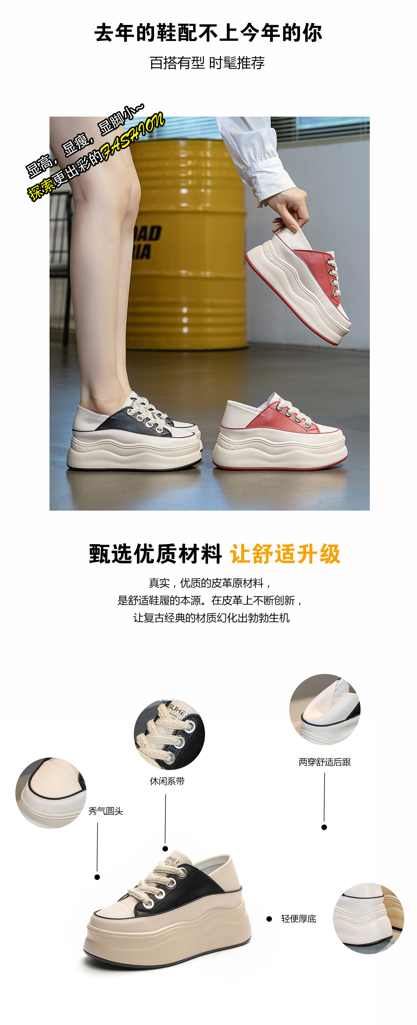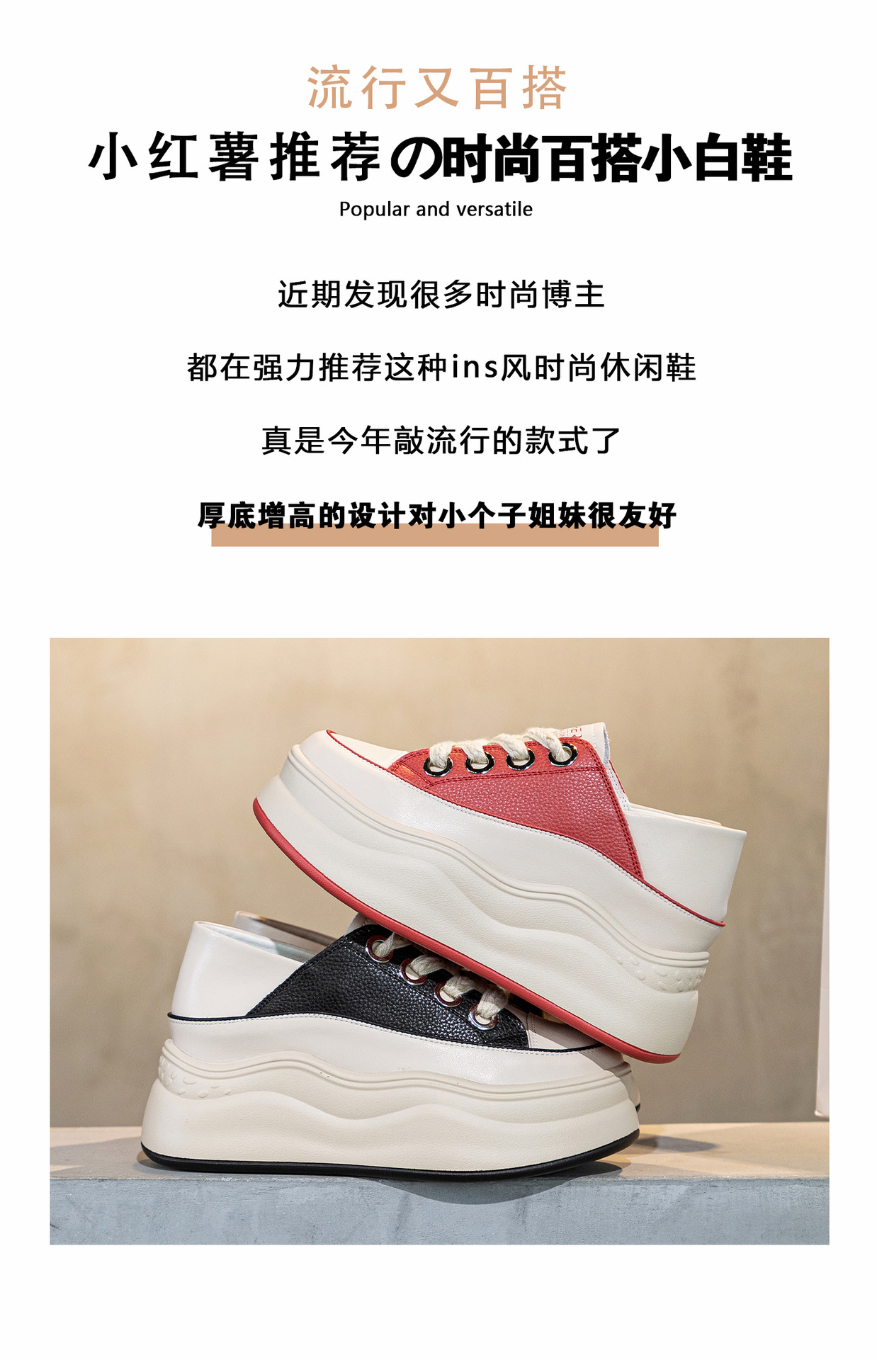 가을 2023 새로운 스타일 내부 높이 증가 가죽 두꺼운 밑창 캐주얼 흰색 신발 웨지 색상 일치 학생 신발 토레 신발 여성 신발