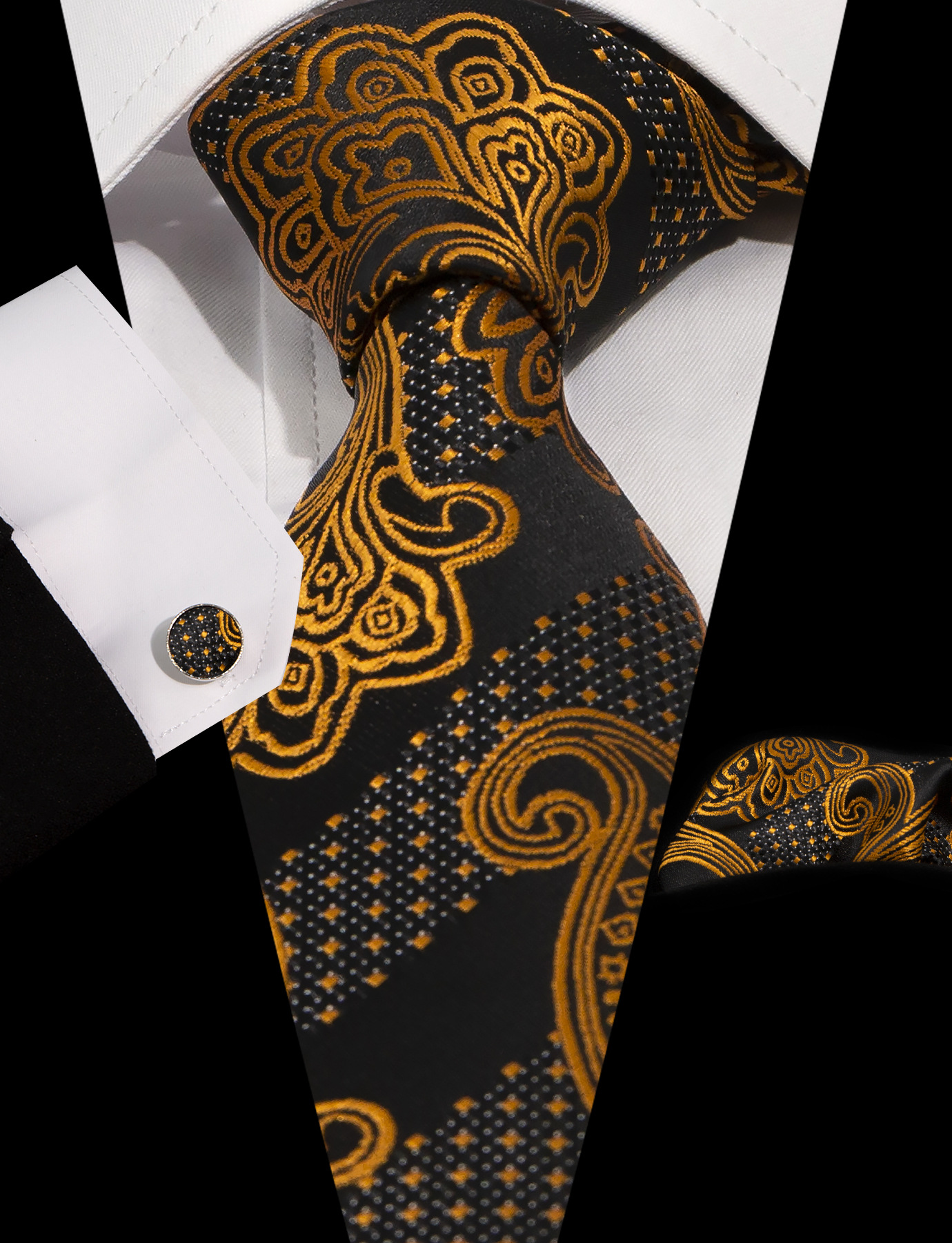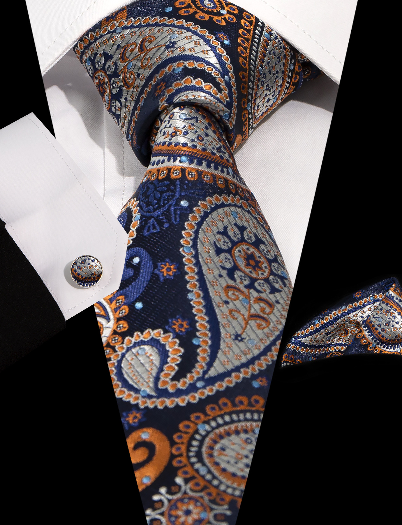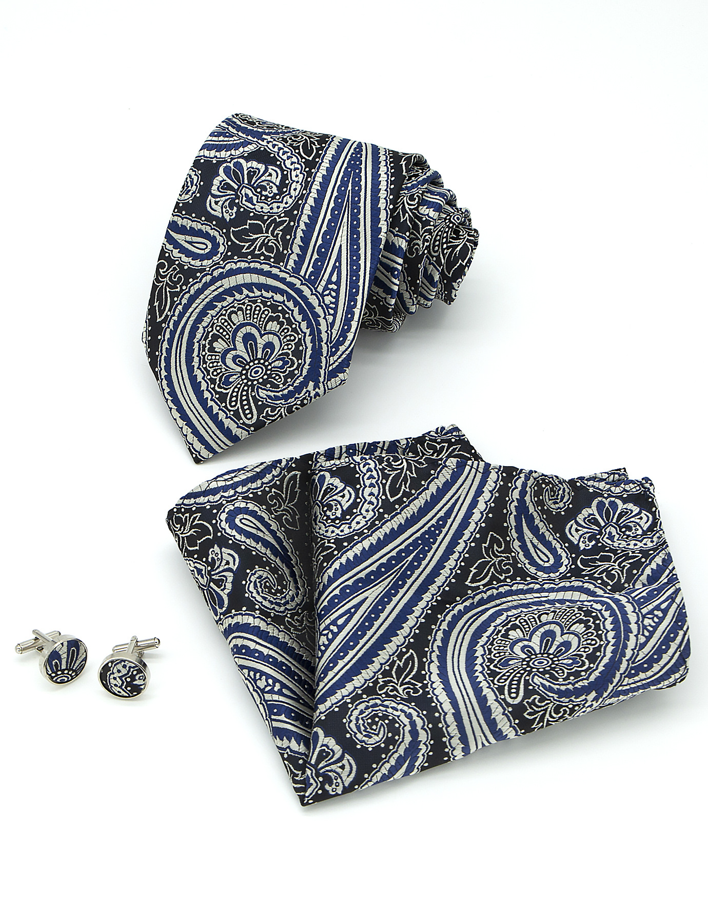 남성 넥타이 스카프 커프스 세트 비즈니스 정장 8.5cm 자카드 페이즐리 3피스 유니폼 넥타이 세트